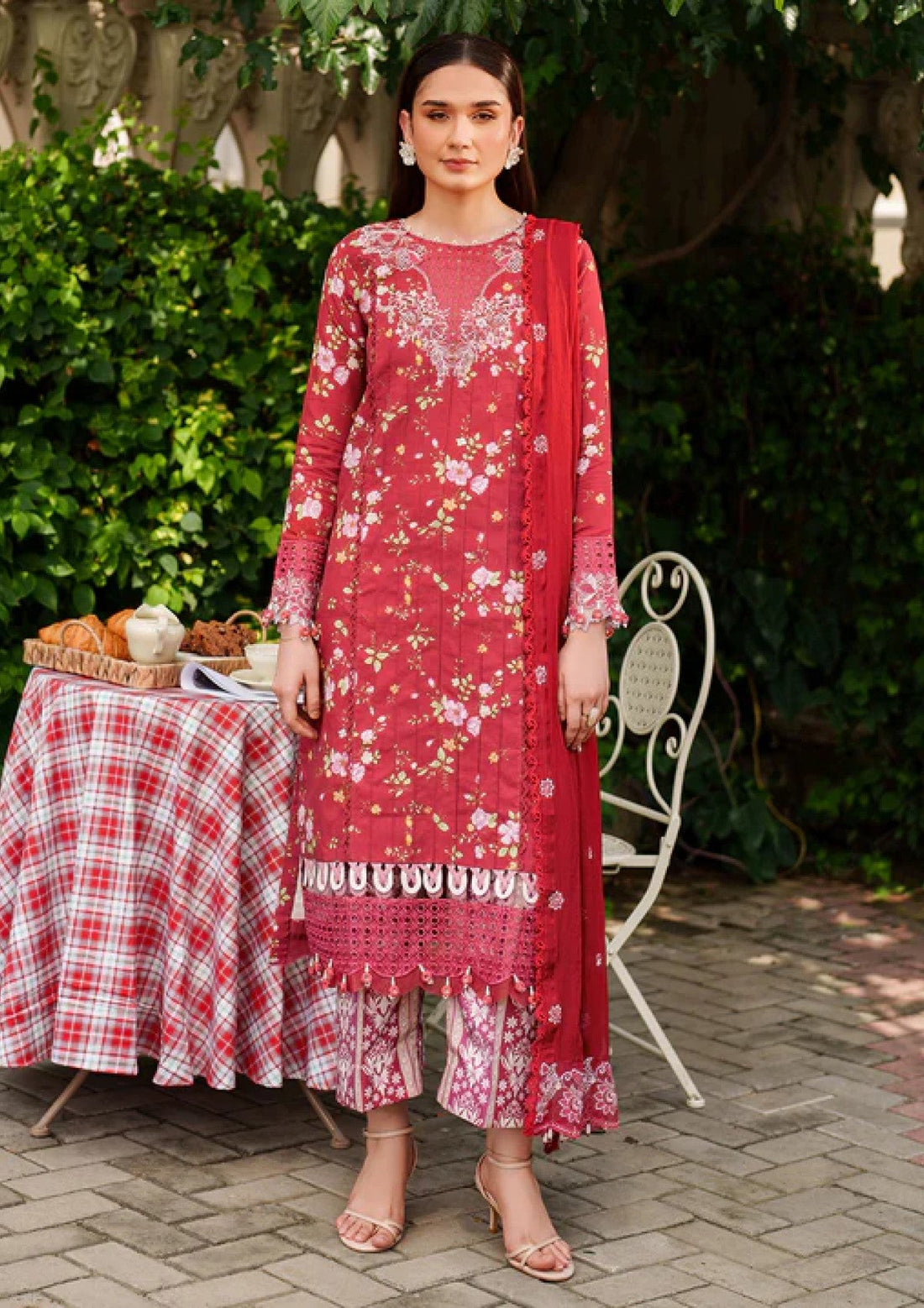 Outfit Type: Eastern Style: Long Shirt Color Type: Red Package Includes: 3 Piece Top ,...