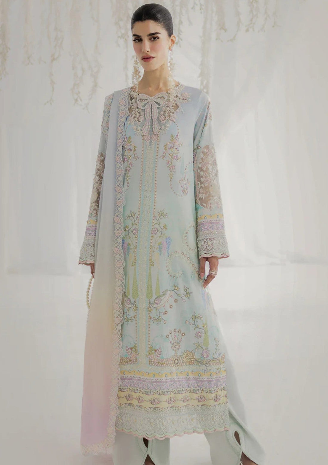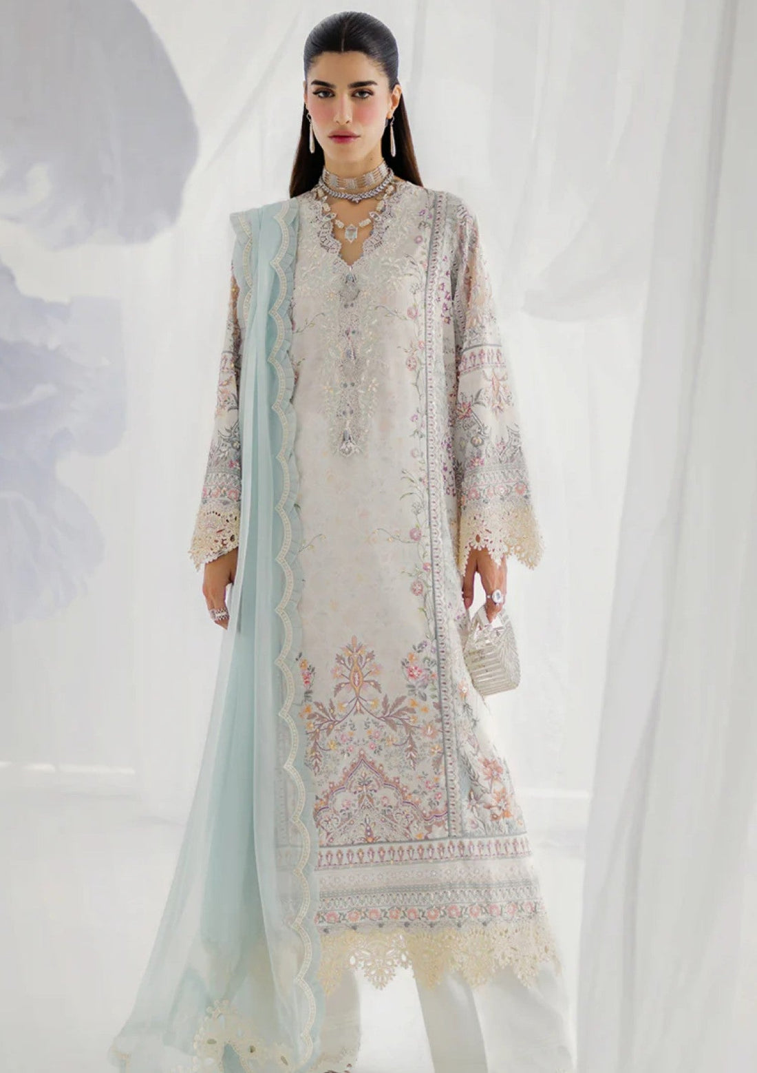Outfit Type: Eastern Style: Long Shirt Color Type: Ice Blue Package Includes: 3 Piece Top...