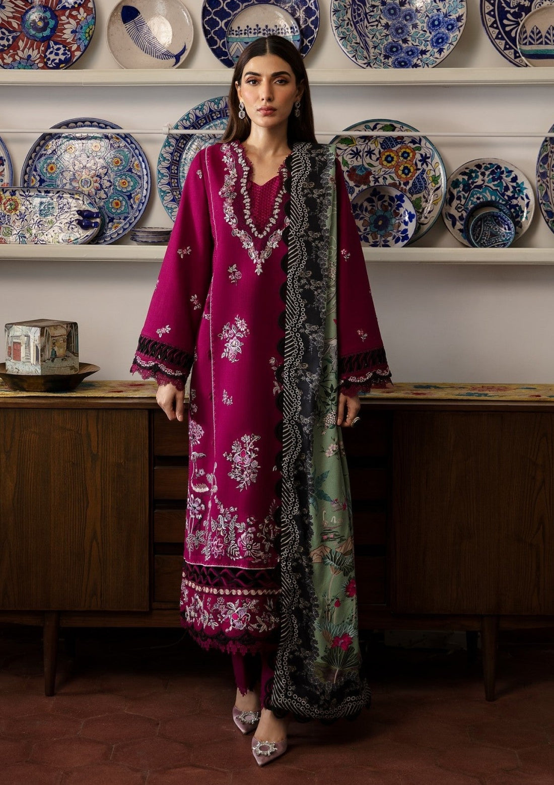 Outfit Type: Eastern Style: Long Shirt Color Type: Deep Fuchsia Package Includes: 3 Piece Top...
