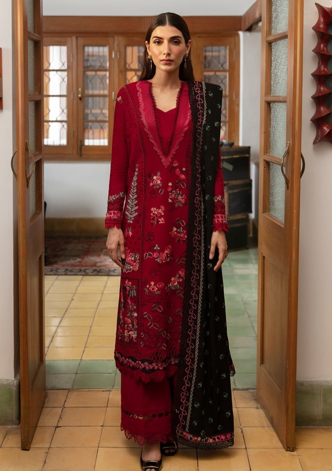 Outfit Type: Eastern Style: Long Shirt Color Type: Maroon Package Includes: 3 Piece Top ,...