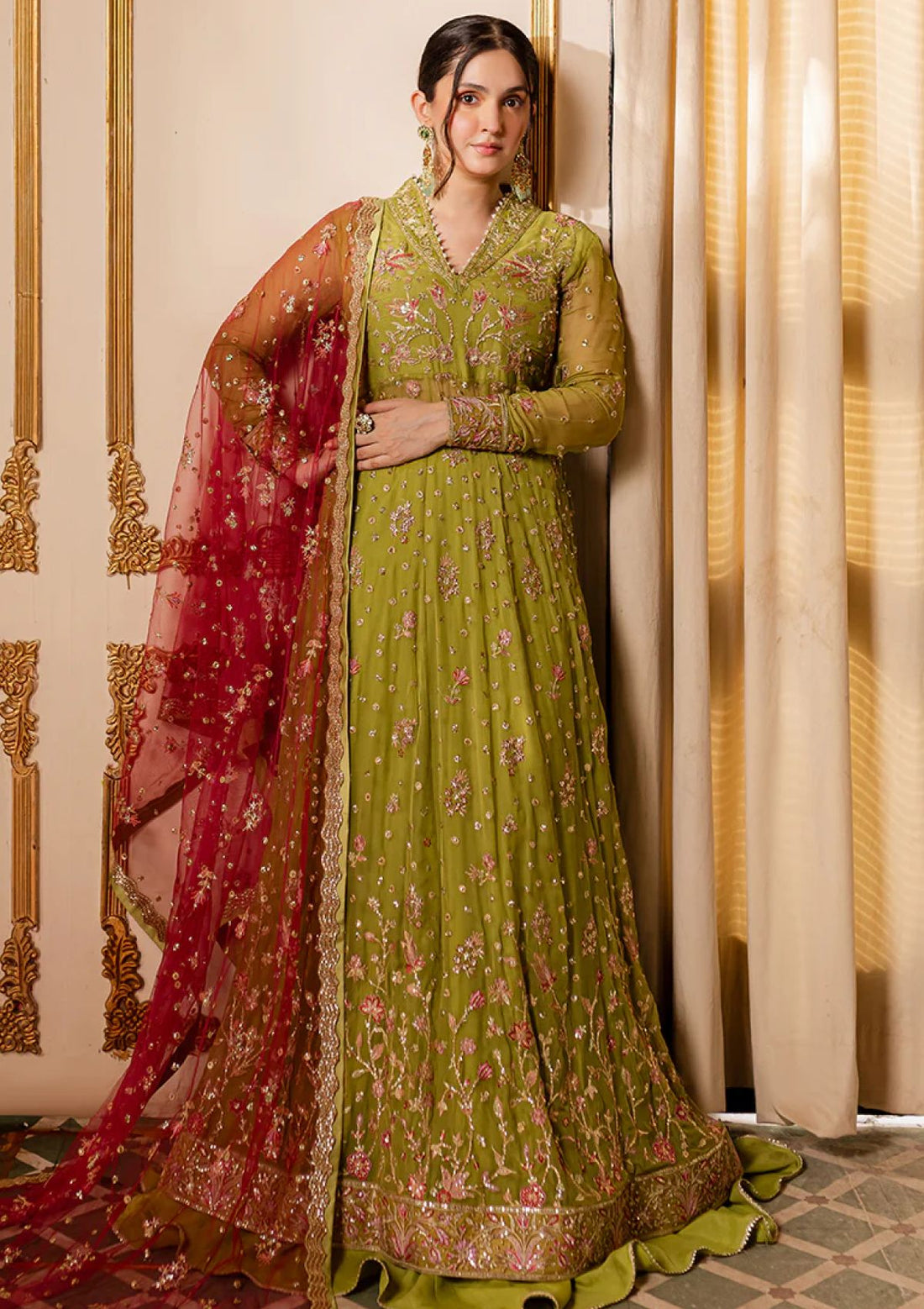 Outfit Type: Eastern Style: Lehenga Color Type: Olive Package Includes: 3 Piece Top , Bottom...