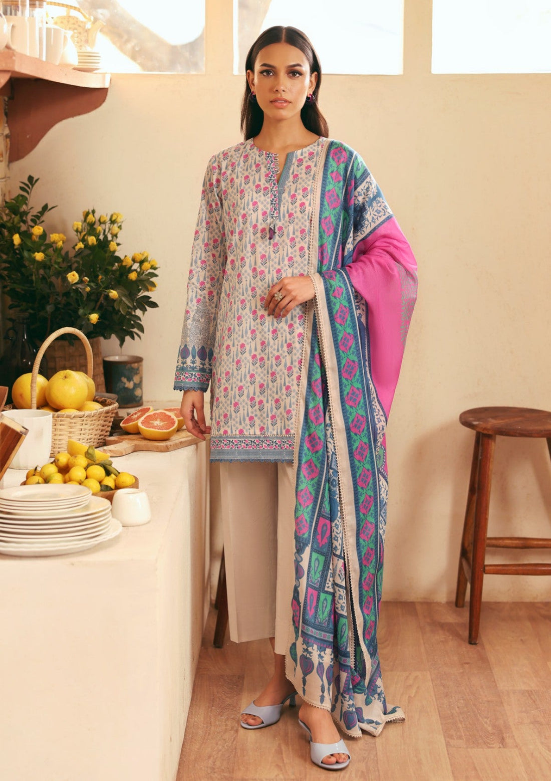 Lawn - Sahar - Selene Premium - 3 Pcs - SSP#15 - OCEANIC PETALS