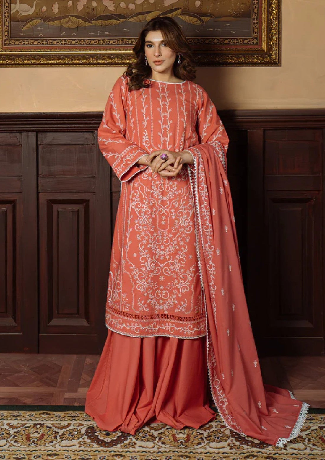 Lawn - Sahar - Festive Chikankari - CK-25-V1-02 - Gilded Coral