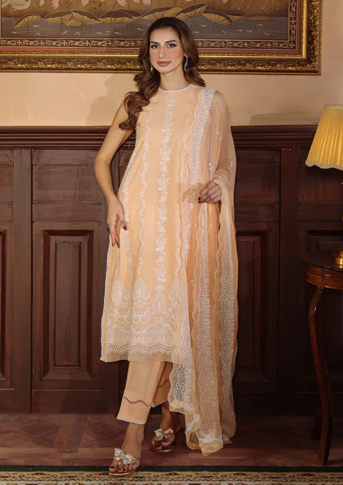 Lawn - Sahar - Festive Chikankari - CK-25-V1-04 - Apricot Glow
