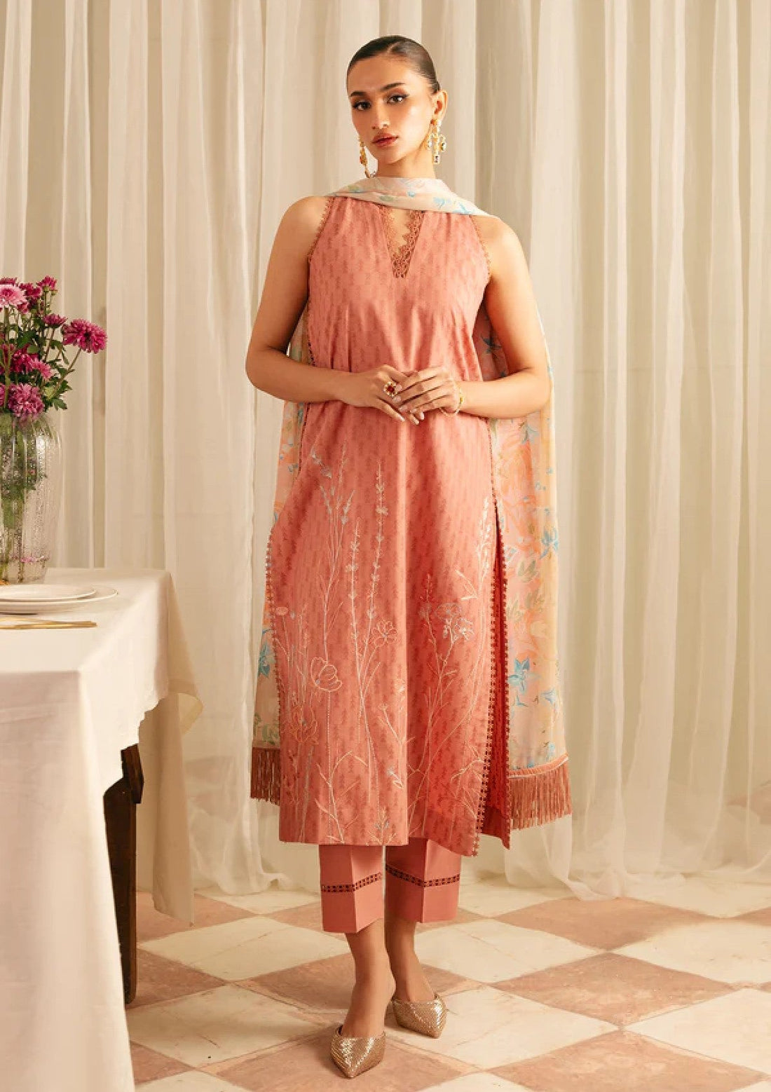 Lawn - Sahar - Jacquard Embroidered - FL-V1-S25-03 - Peach Blossom