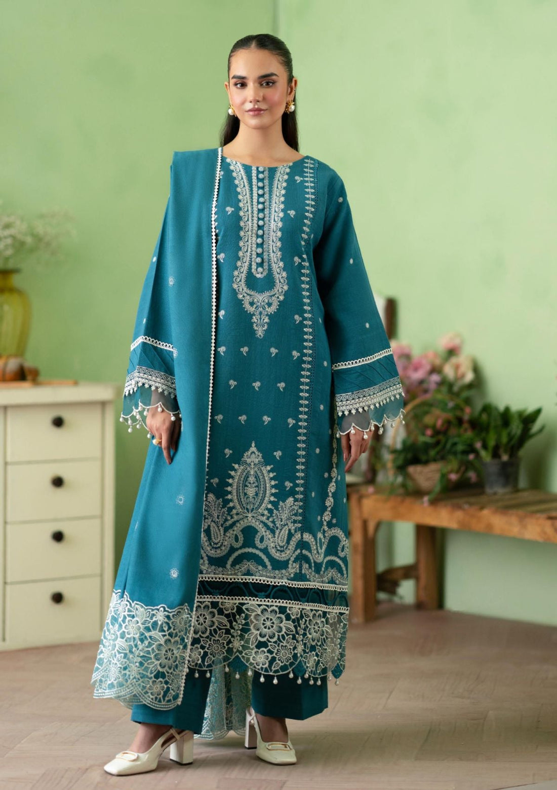 Outfit Type: Eastern Style: Long Shirt Color Type: Aqua Green Package Includes: 3 Piece Top...