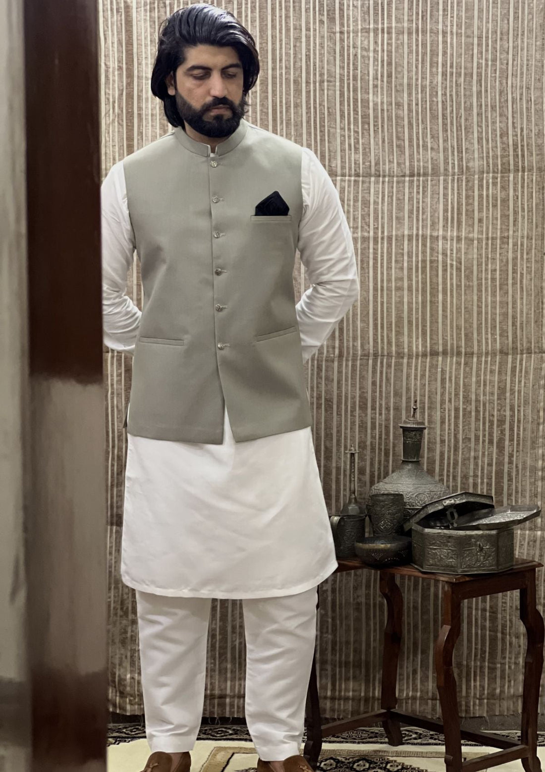 Outfit Type: Eastern Style: Waistcoat Package Includes: 3Piece Waistcoat, Top, Bottom Fabric Waistcoat:Suiting Suit: Silk...