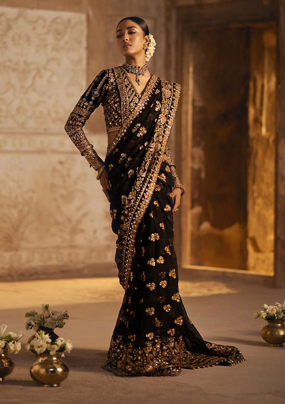 Outfit Type: Eastern Style: Saree Color Type: Black Package Includes: 2 Piece Blouse & Saree...