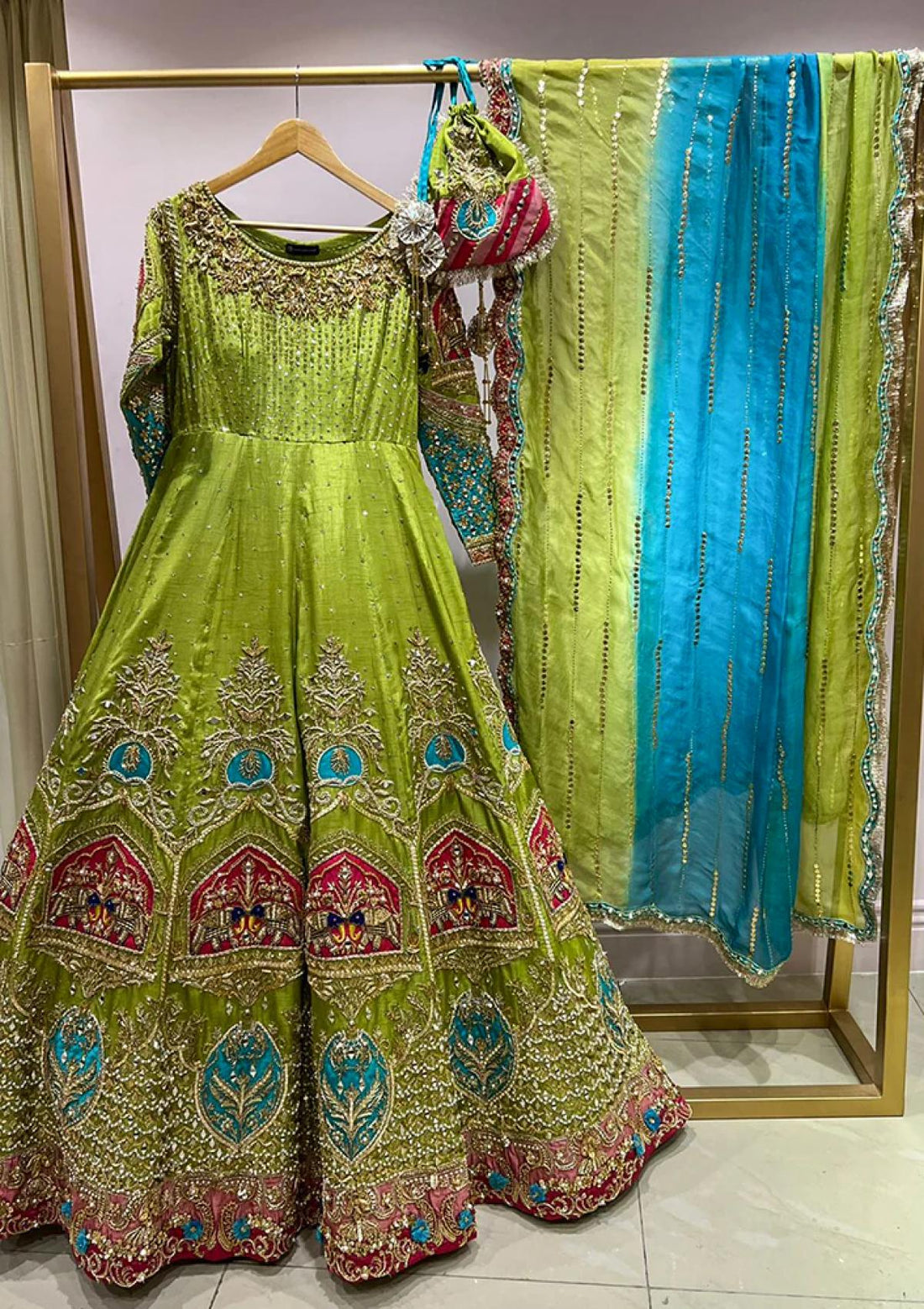 Outfit Type: Bridal Style: Frock Package Includes: 3 Piece Top, Bottom & Dupatta Fabric: Shirt:...