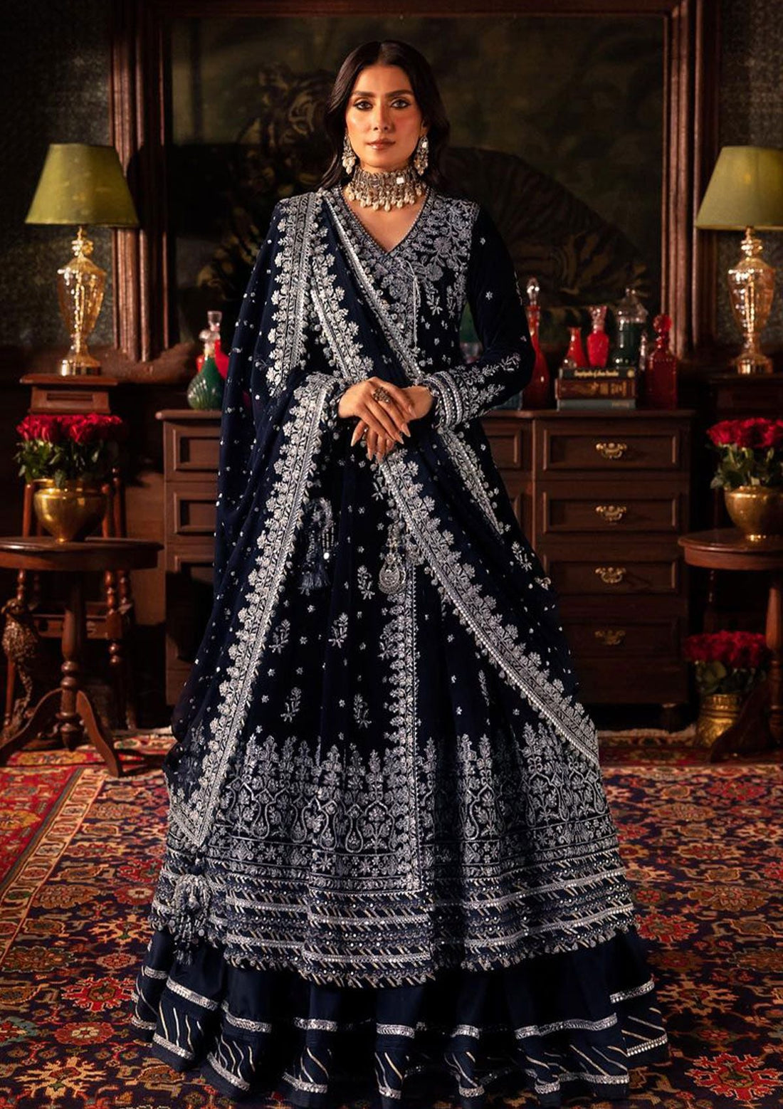 Outfit Type: Eastern Style: Angrakha Color Type: Navy blue Best worn in: Winter Package Includes:...