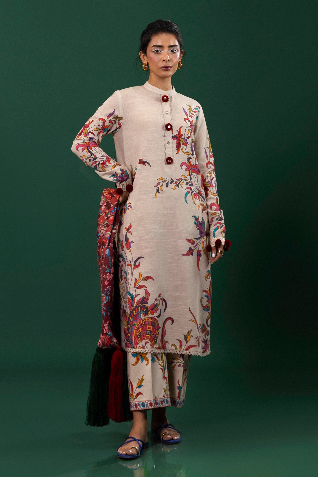 Embroidered Khaddar FrontEmbroidered Sleeves BorderEmbroidered Khaddar TrouserEmbroidered Trouser BorderDyed Khaddar Back & SleevesDigital Printed Monar...