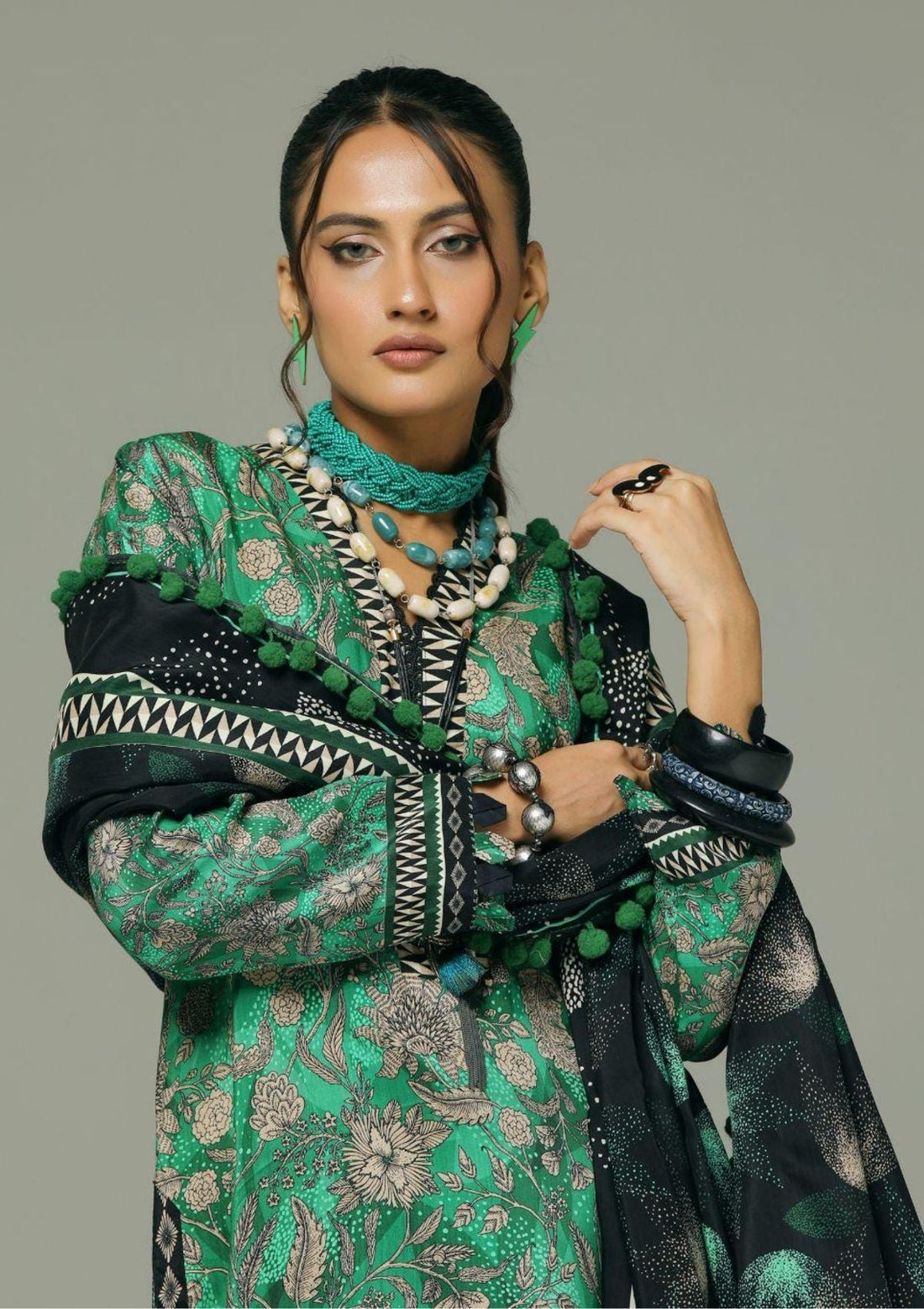 Outfit Type: Eastern Style: Kurta Set Color Type: O Green Package Includes: 3 Piece Top,...