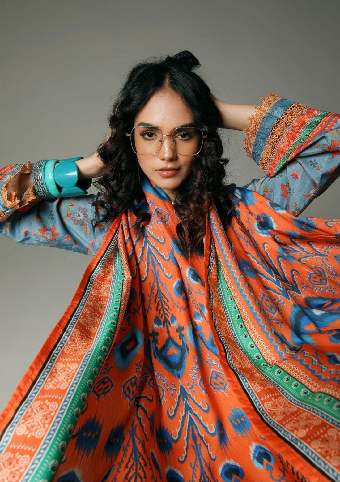 Outfit Type: Eastern Style: Kurta Set Color Type: Orange Green Package Includes: 3 Piece Top,...