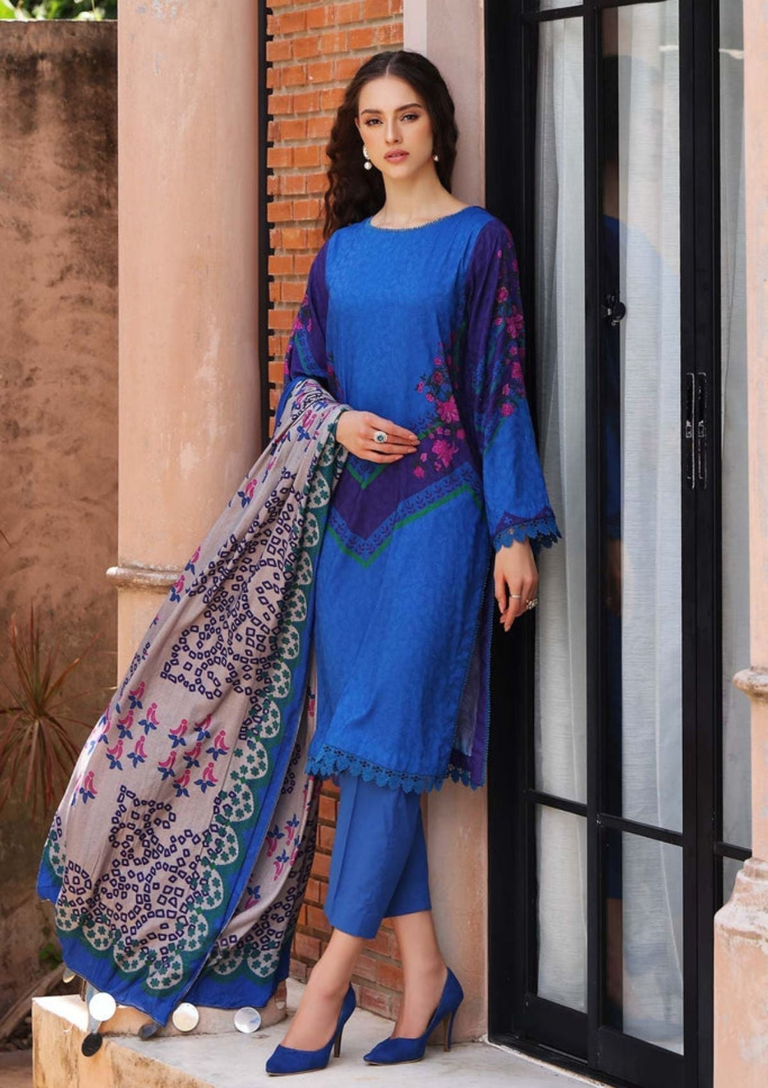 Description: Printed MarinaShirt Printed Marina Dupatta Marina Trouser Note:Please note that the color of the...