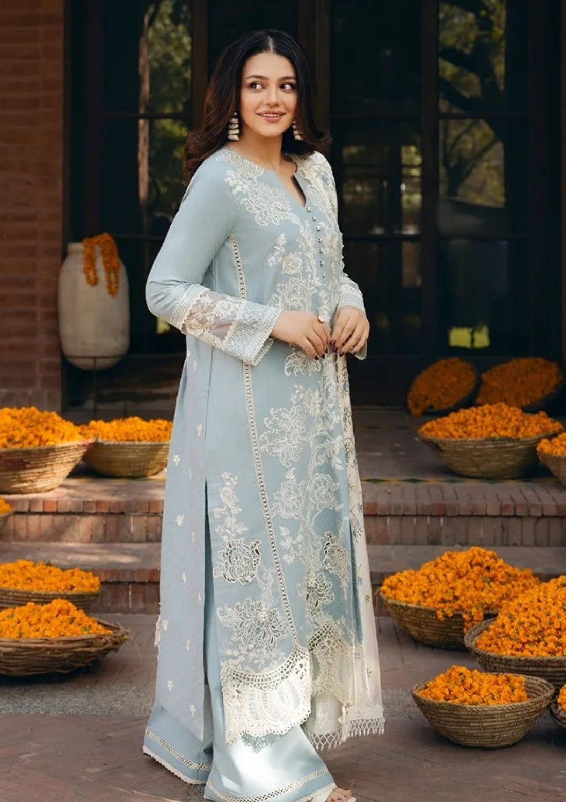 Outfit Type: Eastern Style: Long Shirt Color Type: Ice Blue Package Includes: 3 Piece Top...