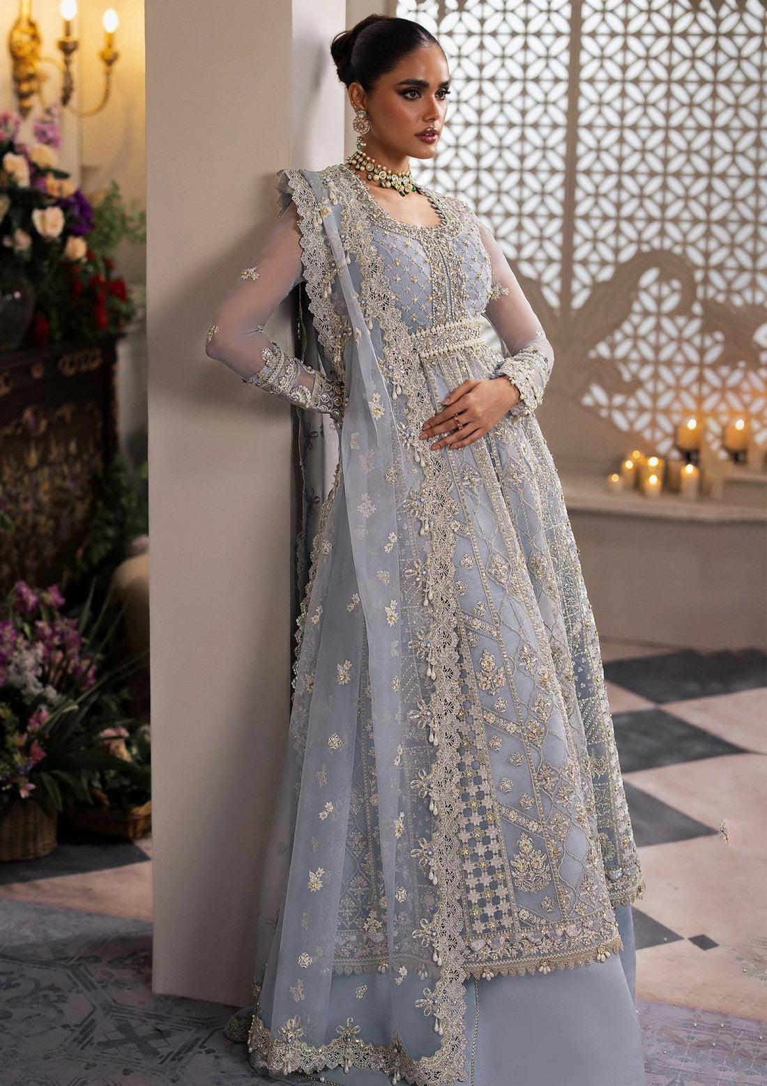 Outfit Type: Eastern Style: Gown Color Type: Ice Blue Package Includes: 3 Piece Top ,...