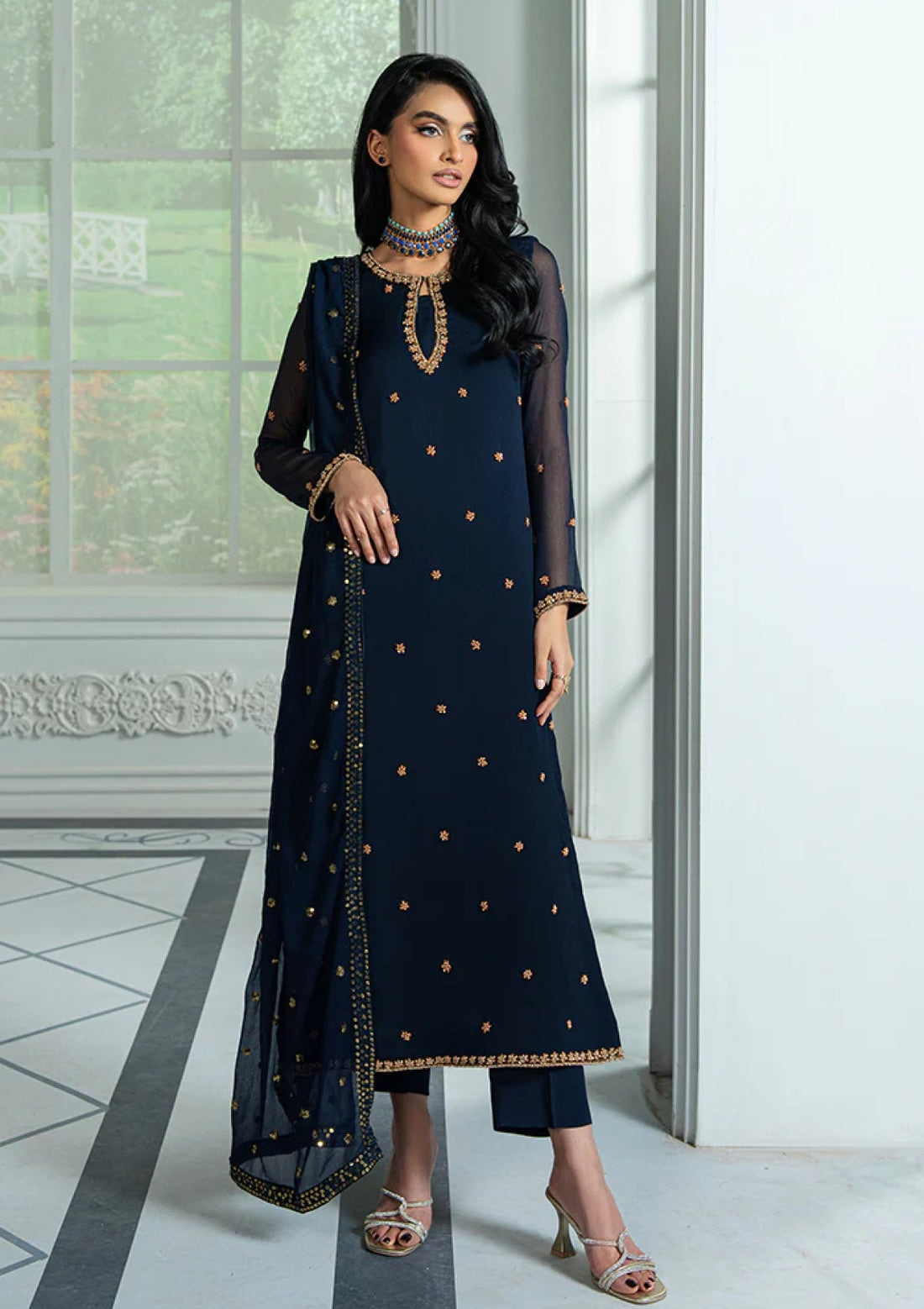 Outfit Type: Eastern Style: Frock Color Type: Navy Blue Package Includes: 3 Piece Top ,...