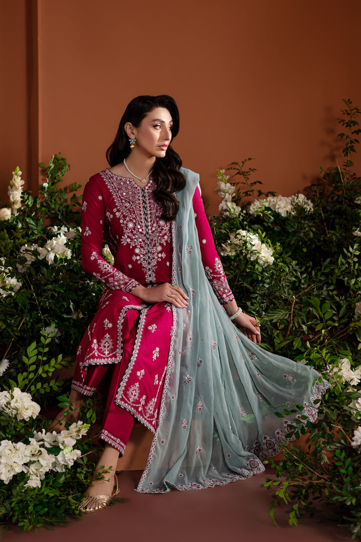 This stylish pink pima lawn front-open embroidered shirt features printed facings that add a unique touch to its design, while the fitted embroidered sleeves provide a sleek, elegant look. The intricate embroidery on the shirt creates a sophisticated and timeless appeal.