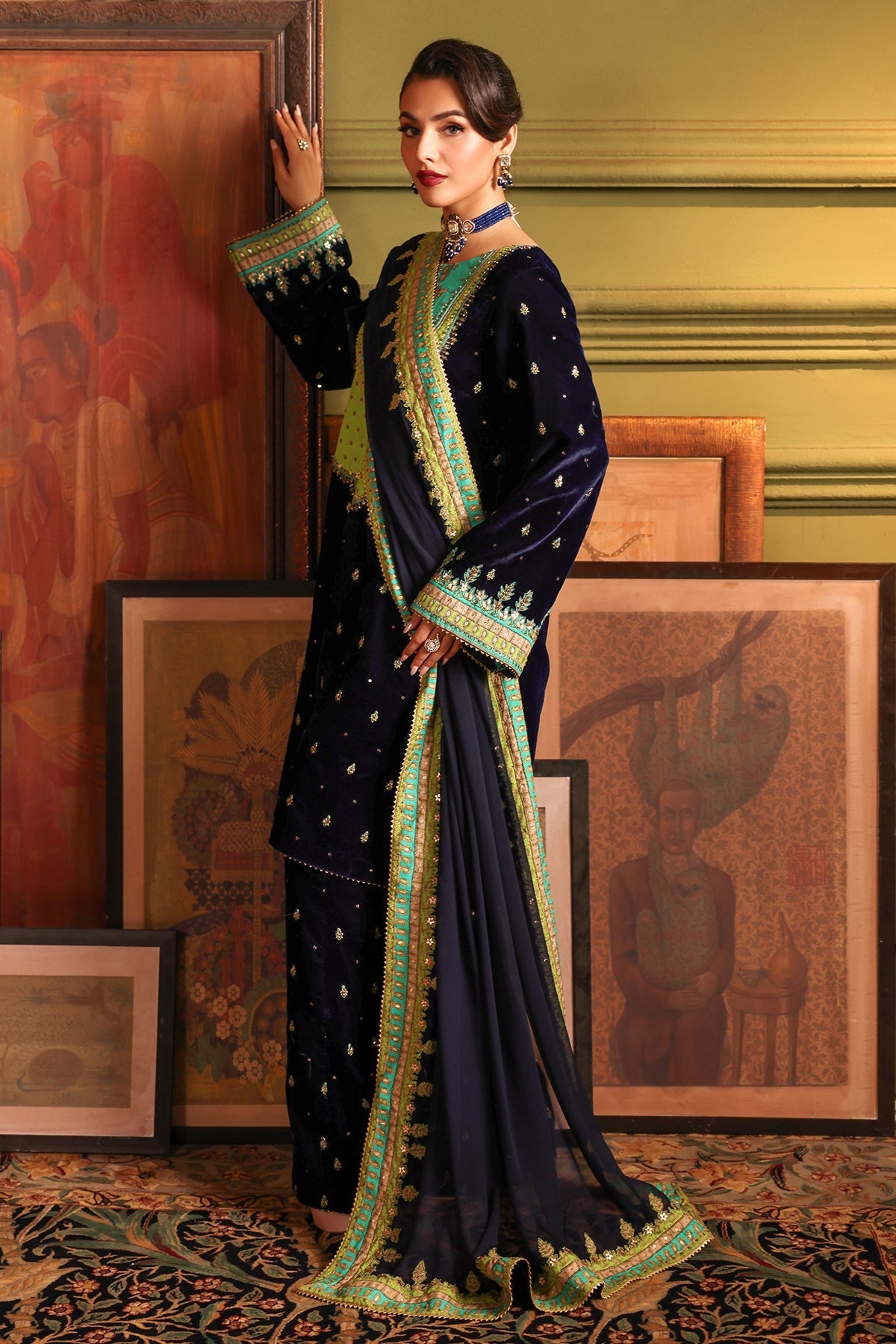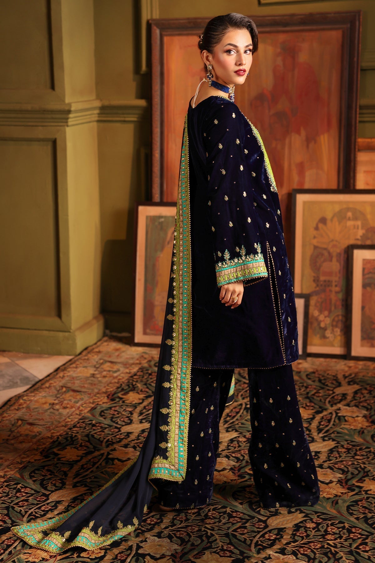 Embroidered Dyed Velvet Trouser ÃÂ 2.25 Meter