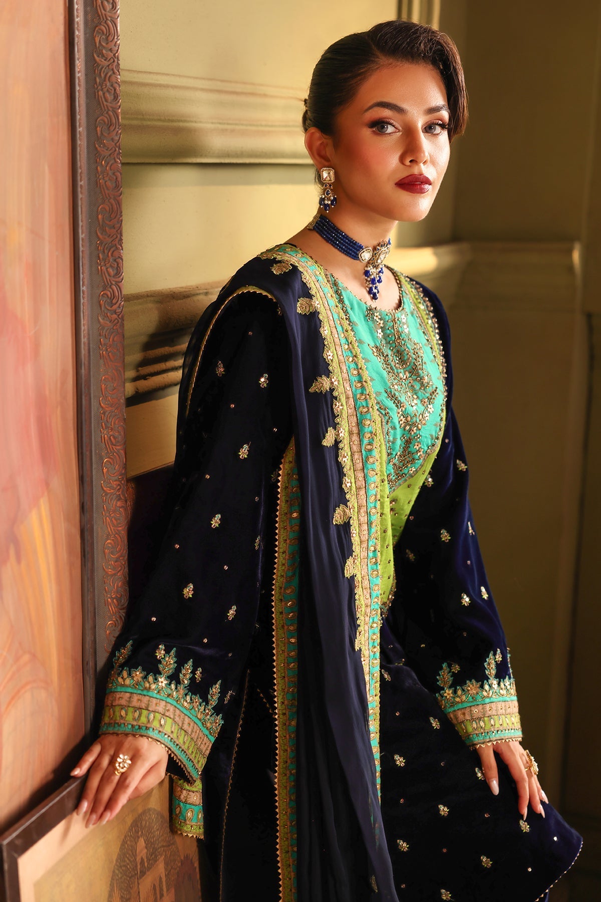 Embroidered Dyed Velvet Front & Sleeves ÃÂ 2 Meter