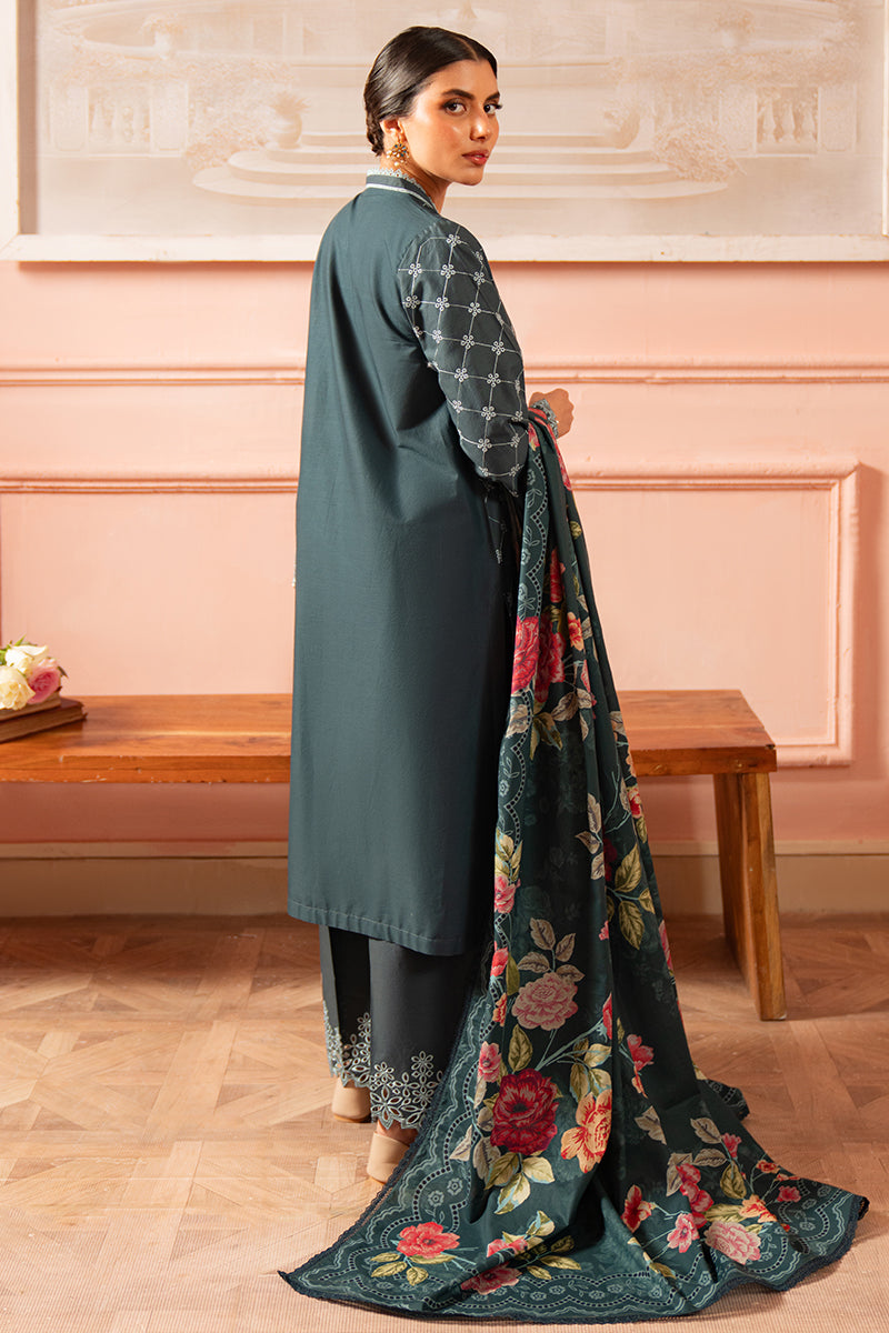The AZURE SERENITY-3 PIECE EMBROIDERED SUIT is the ultimate in elegance and style. Made with high-quality cambric, the embroidered shirt front and sleeves add a touch of sophistication, while the dyed back offers a classic look. The cambric embroidered trouser completes the ensemble, along with the lawn printed dupatta for the perfect finishing touch.