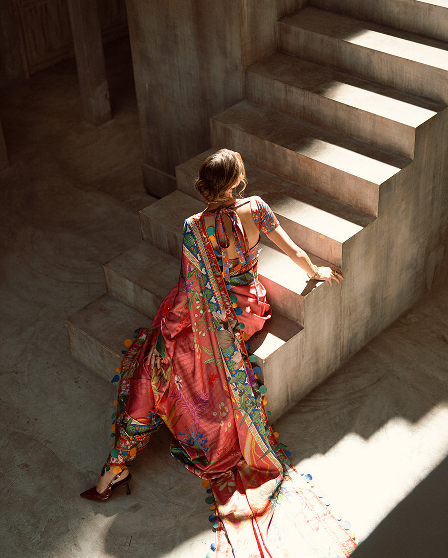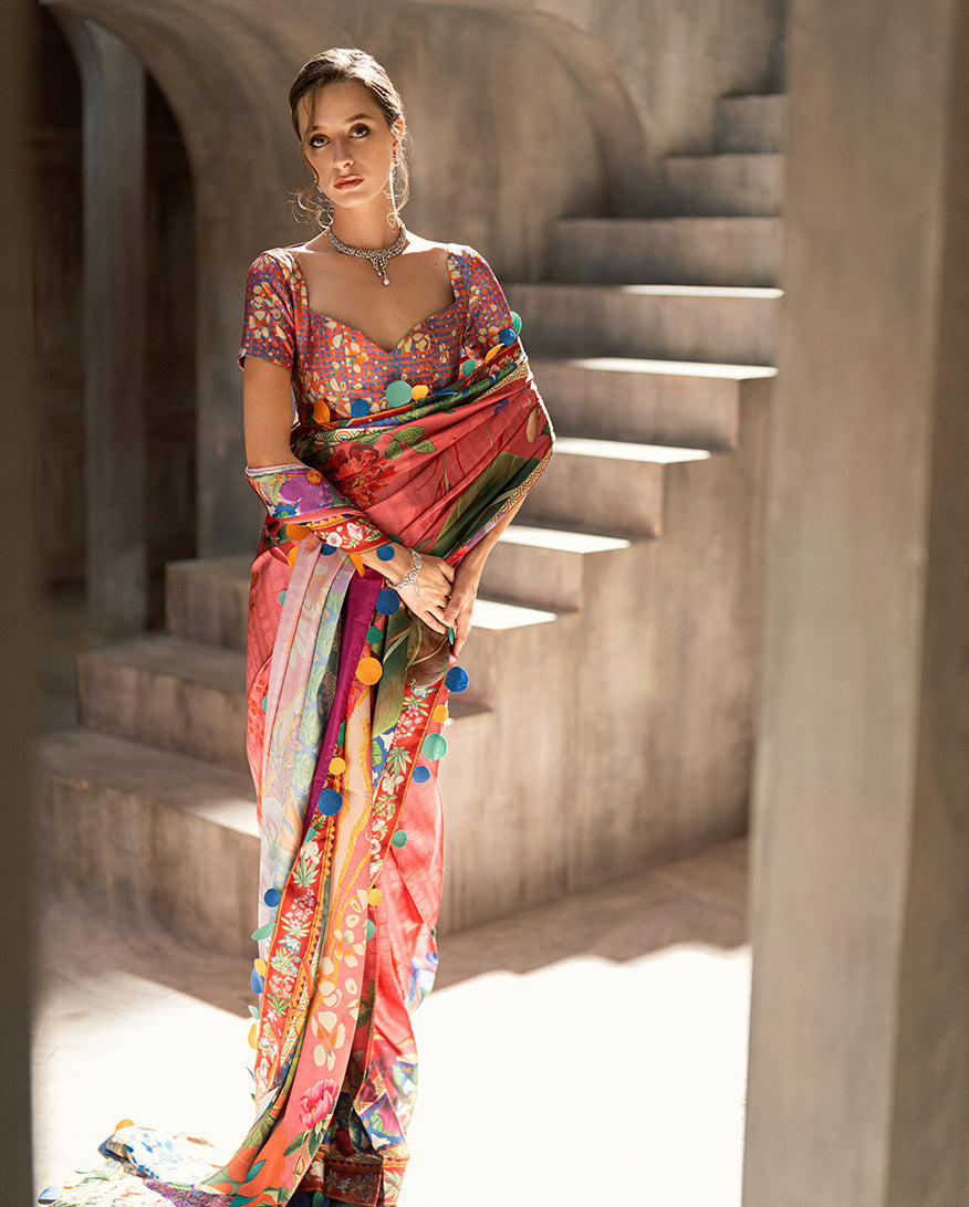 Turn heads with our luxuriously crafted Silk Sarees, paired with exquisitely hand-embellished and finely embroidered blouses. Each saree is a masterpiece - rich in texture, flawlessly finished, and designed to drape like a dream. The blouses are adorned with intricate details that add a regal touch, making these ensembles perfect for weddings, festivities, and all your standout moments.