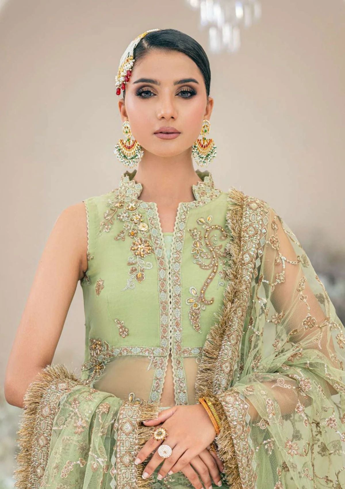 - Embellished + Embroidered Organza Front Right and Left Panel