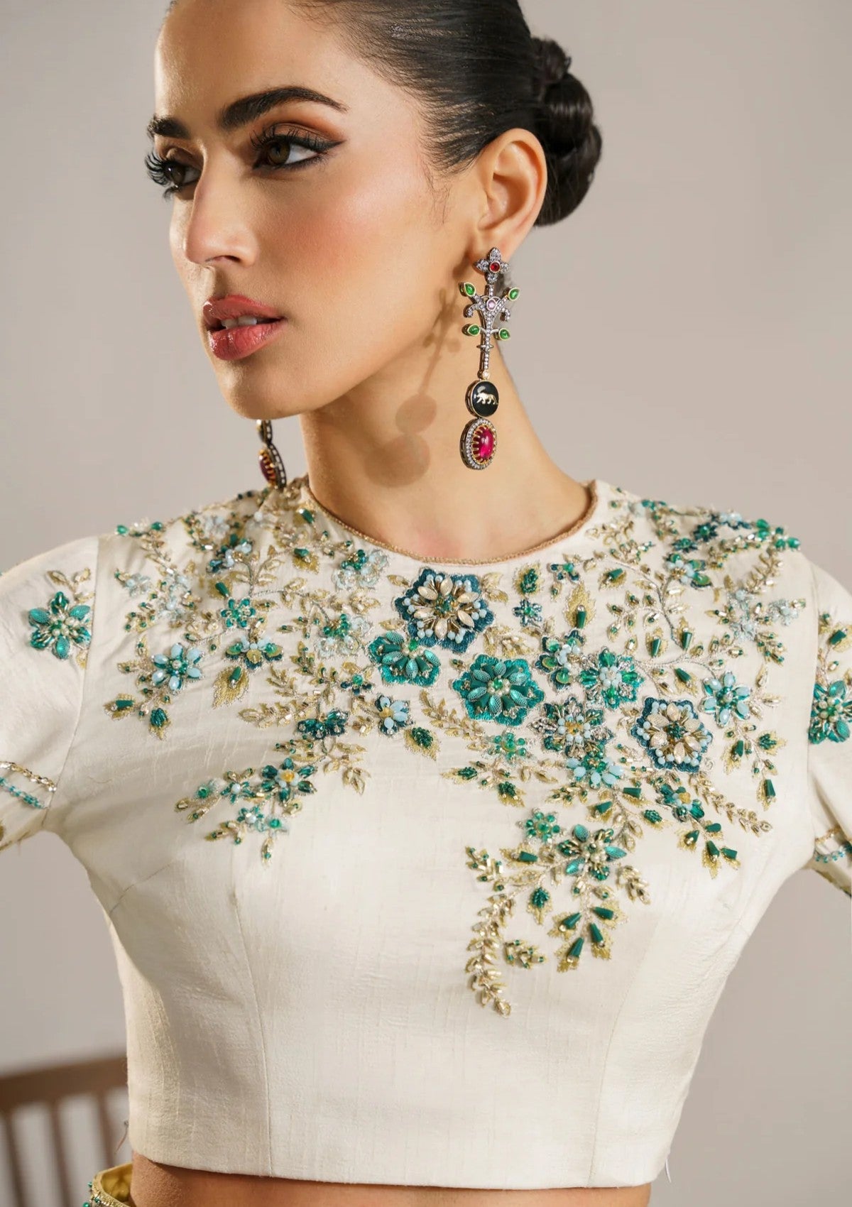 - Korean Raw Silk Embroidered Hand Embellished Front Blouse - 26 inches