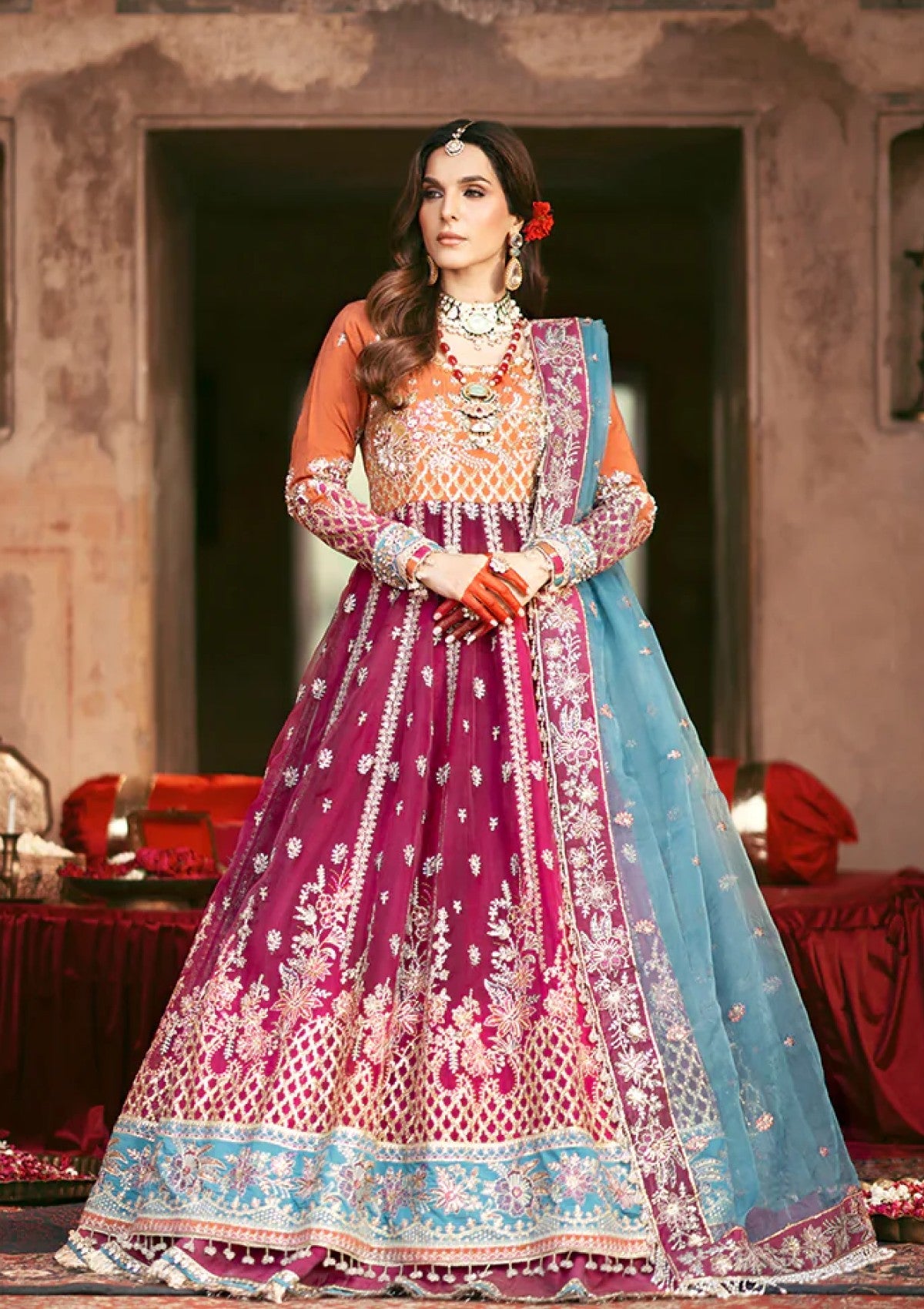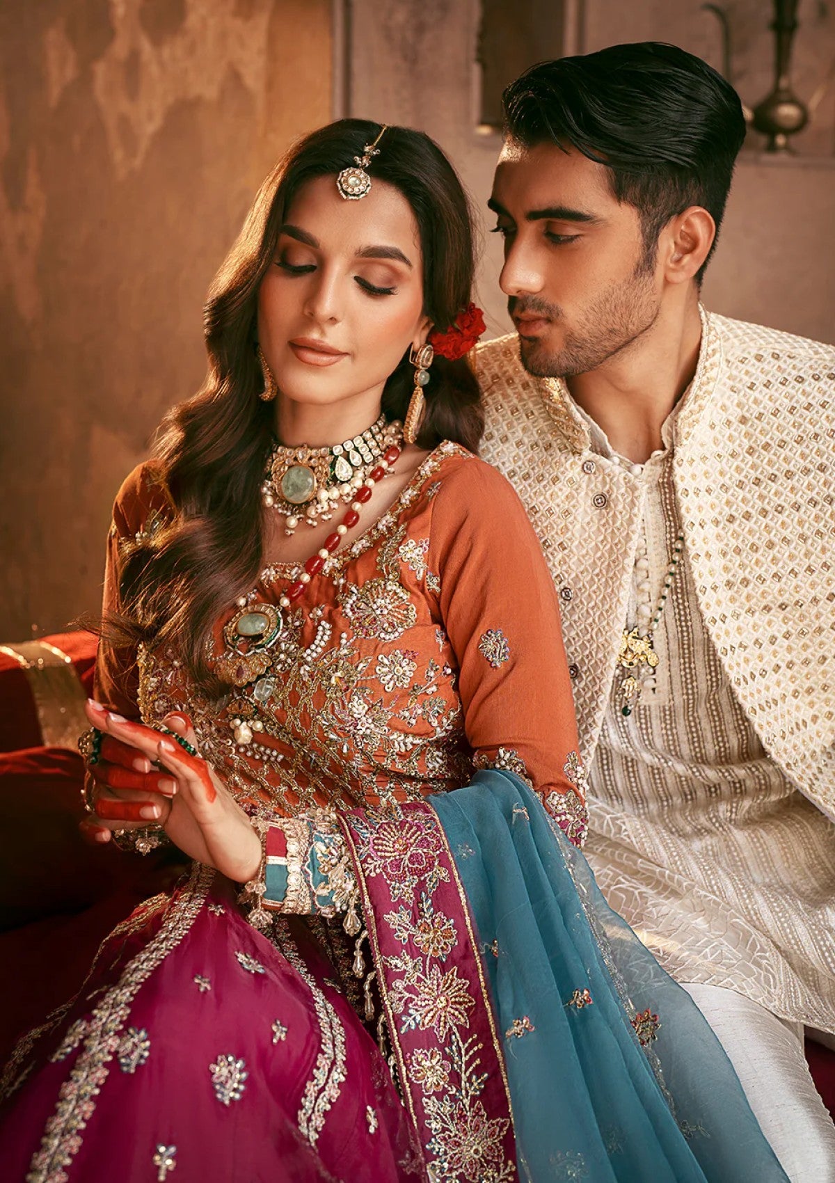Adorned with hand-embellished Resham embroidery, the raw silk blouse is a testament to meticulous artistry. Each sleeve tells a story, embellished with delicate motifs and bordered by intricate silk threads. The piÃÂèce de rÃÂésistance? A breathtaking pishwas, fashioned from 12 masterfully embroidered panels, framed by twin borders that exude opulence. Paired with an organza dupatta, shimmering in Resham and sequin accents, and a flowing raw silk lehnga, *Regalia* transforms luxury into a living, breathing work of art. Draped in Regalia, you don't just wear eleganceâÃÂÃÂyou embody it.