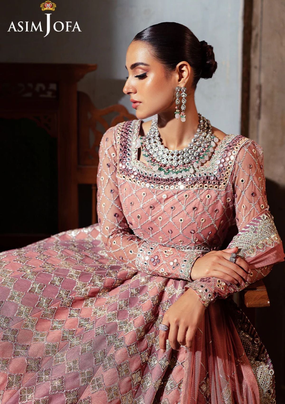 Echoing the charm of a rose garden, this ensemble redefines feminine grace. The embroidered Peshwas, a blooming work of art, is delicately adorned with light gold zari weaving through soft tea pink, lilac, and beige threads. Sparkling accents of light gold 3mm cupped sequins are artfully dispersed across the outfit, while 9mm sequins illuminate the borders and bodice, enhancing its beauty. Paired with an embroidered dupatta, a gentle breath of elegance, this ensemble is a vision of pure perfection.