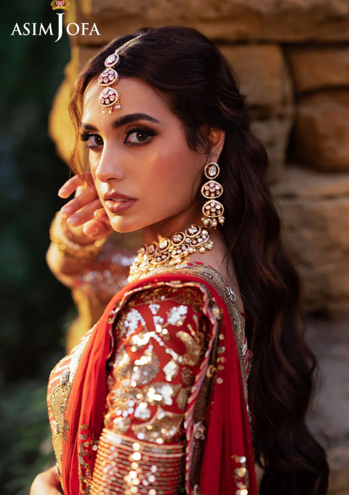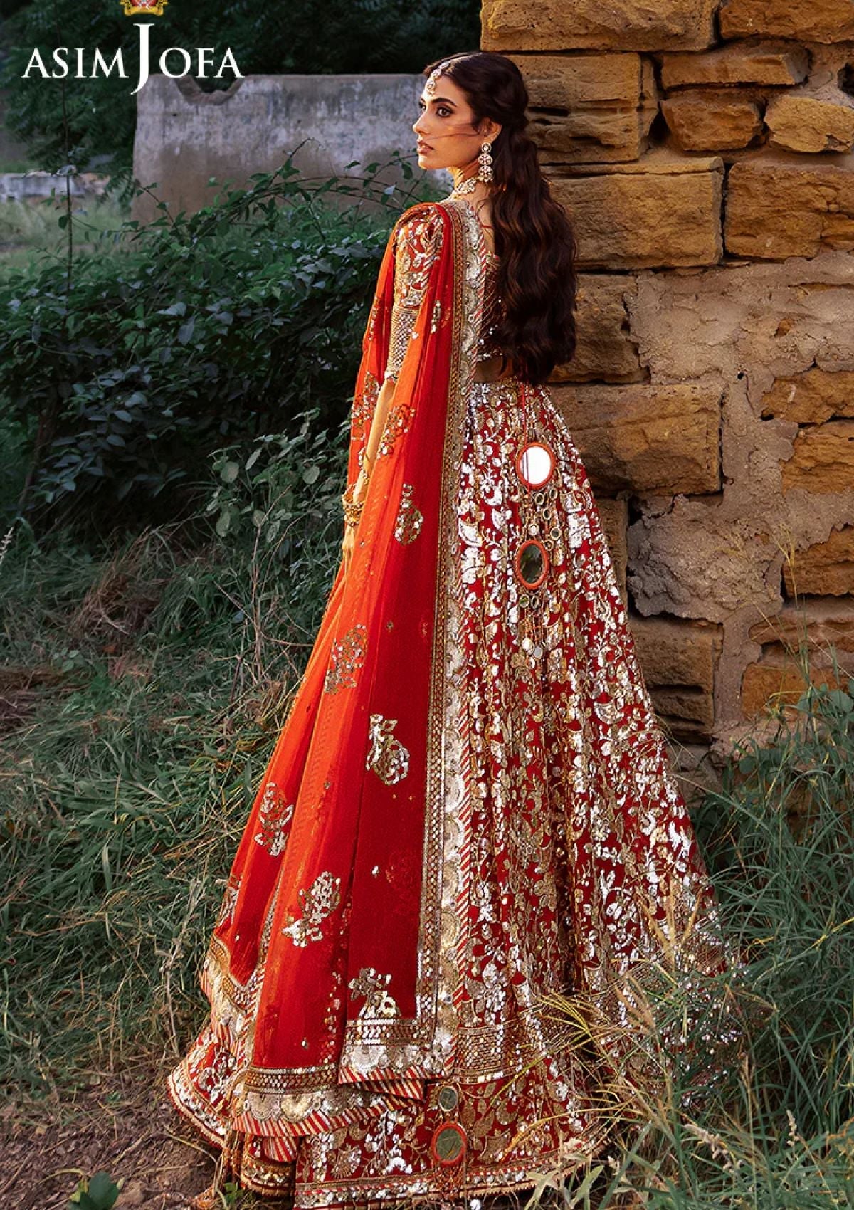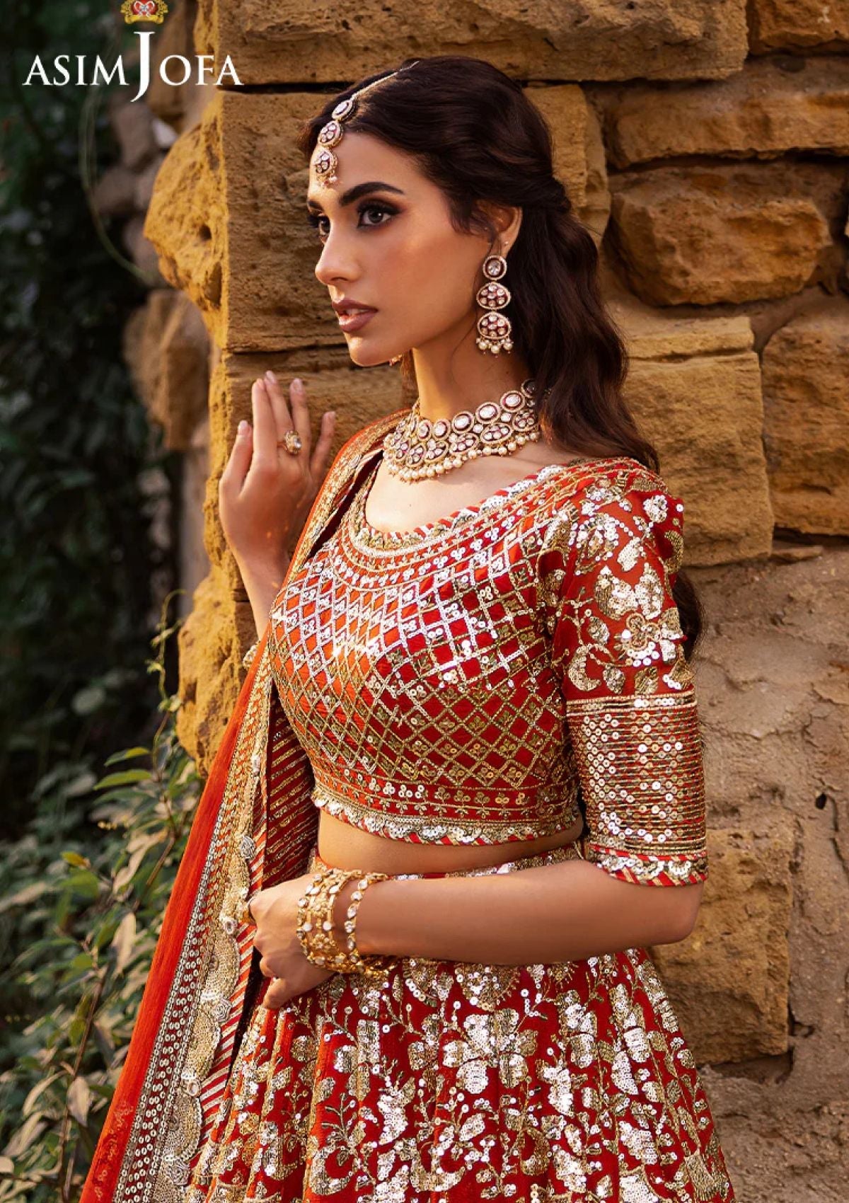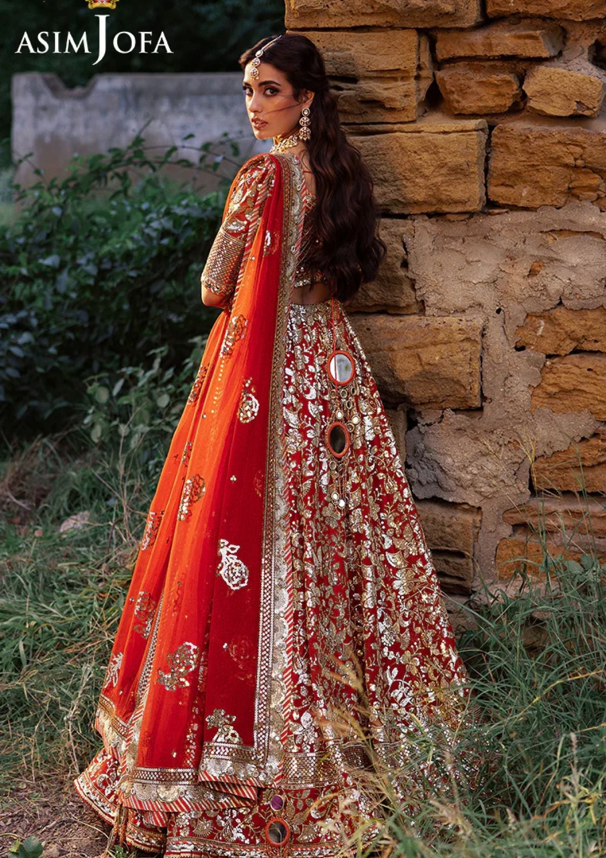 Like an orange marigold in radiant bloom, this ensemble exudes divine femininity. The embroidered outfit, an artistic masterpiece, is graced with intricate gold zariwork woven among warm rust threads, while light gold sequins in 5mm and 3mm sizes catch the light, adding a luminous charm. The embroidered dupatta, a flimsy expression of beauty, completes this harmonious ode to Eastern fashion.