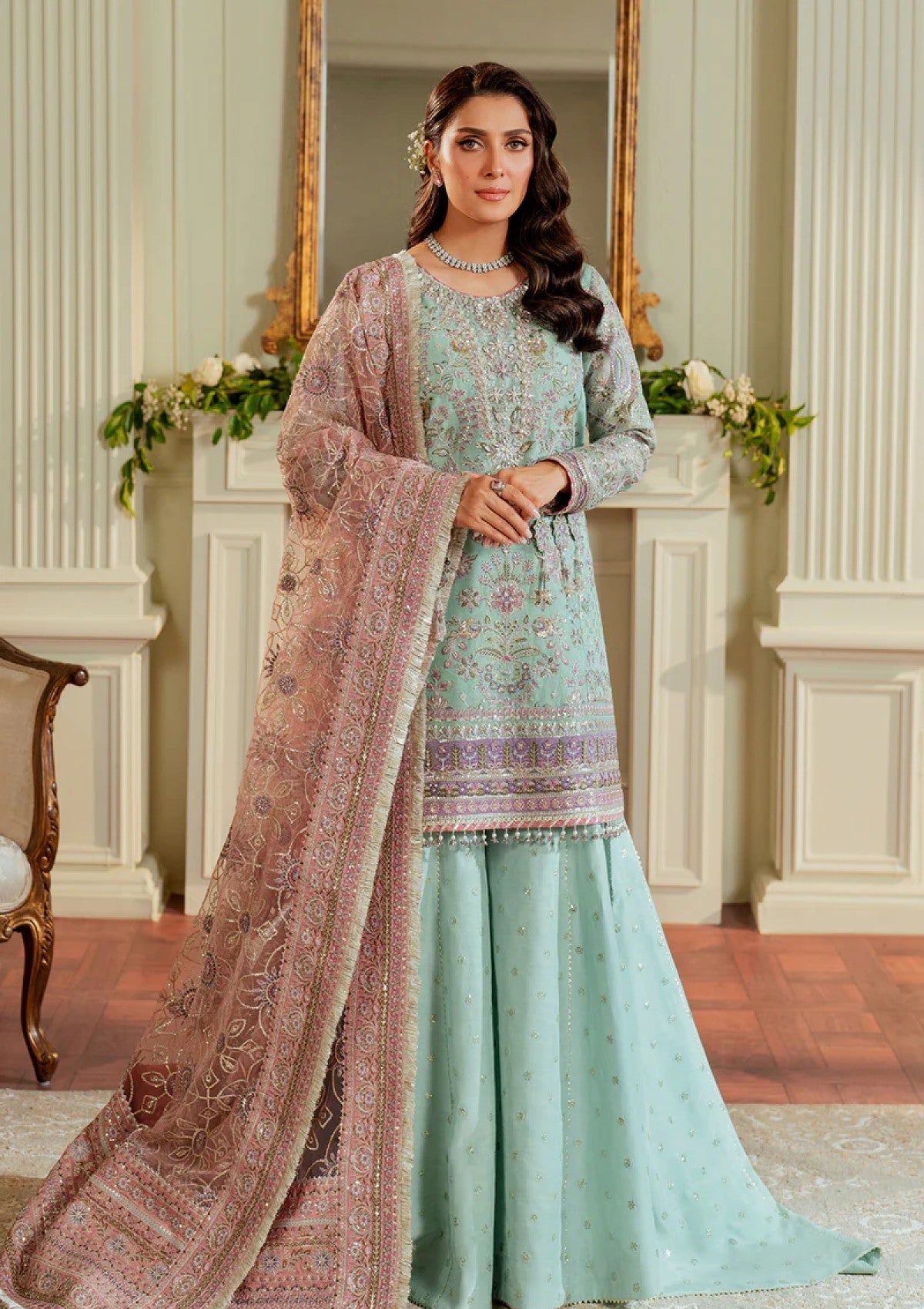 Crafted from a fine embroidered net material, it is designed withsequin patternsthroughout the dupatta, coupled withthreadworkand silver tilla, adding a decorative finish.