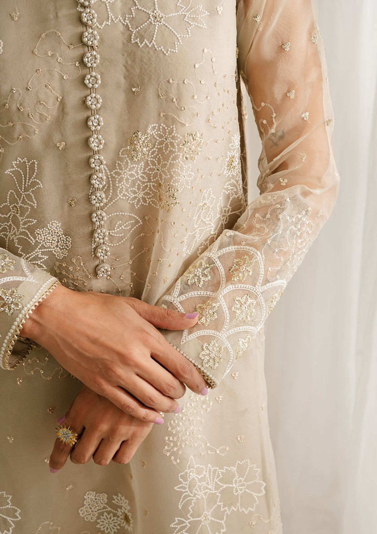 - Organza embroidered shirt front, back & sleeves