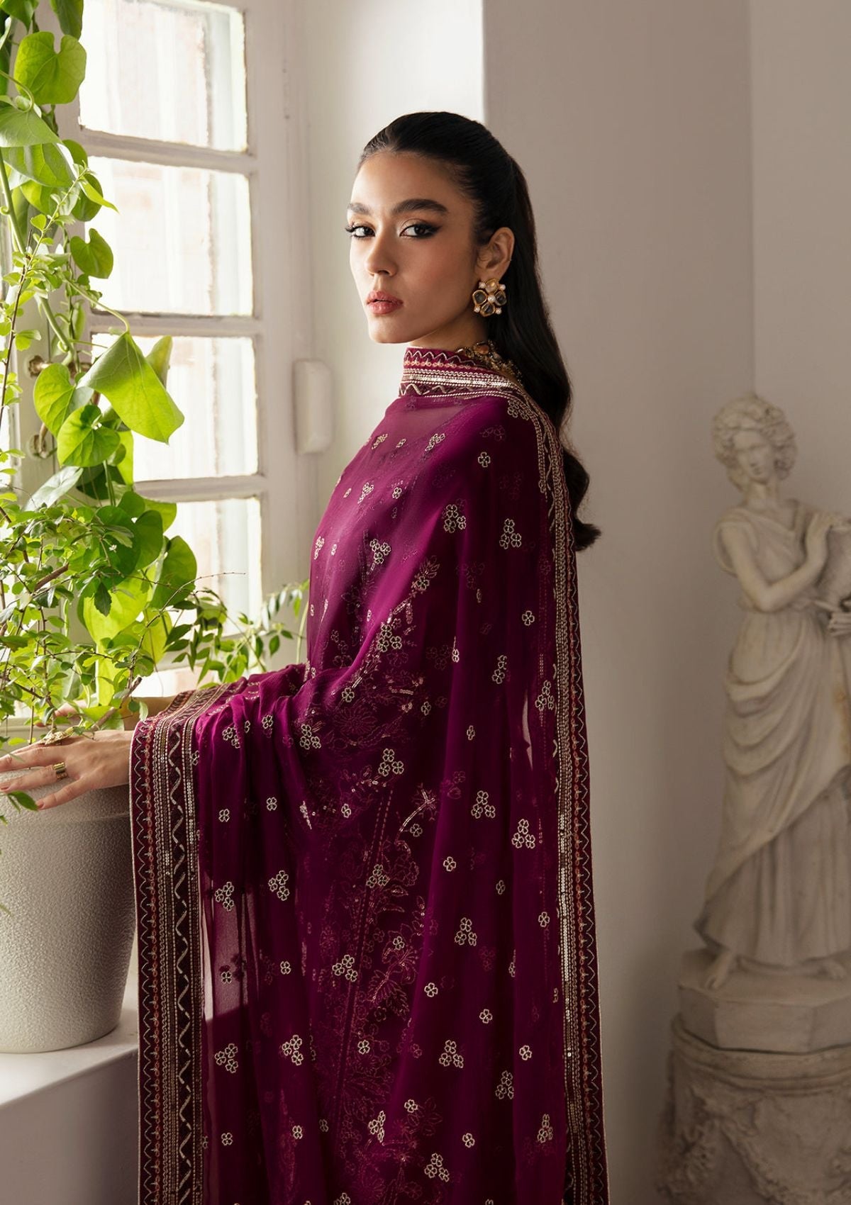Embroidered chiffon dupatta