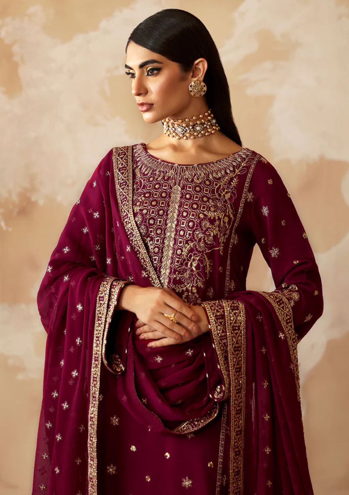 - Embroidered & sequined chiffon dupatta