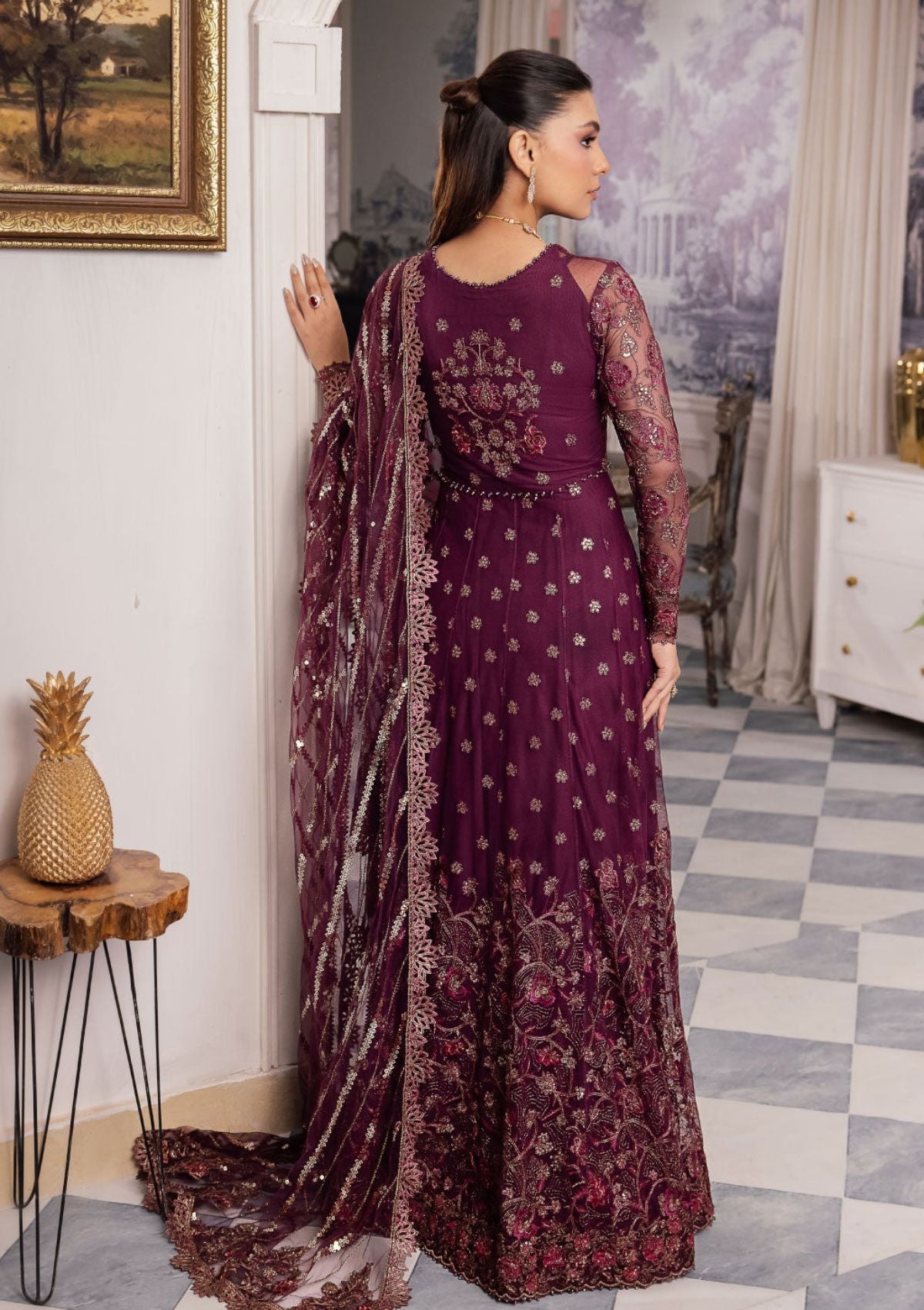 - Dupatta: Embroidered Net (2.75 y)