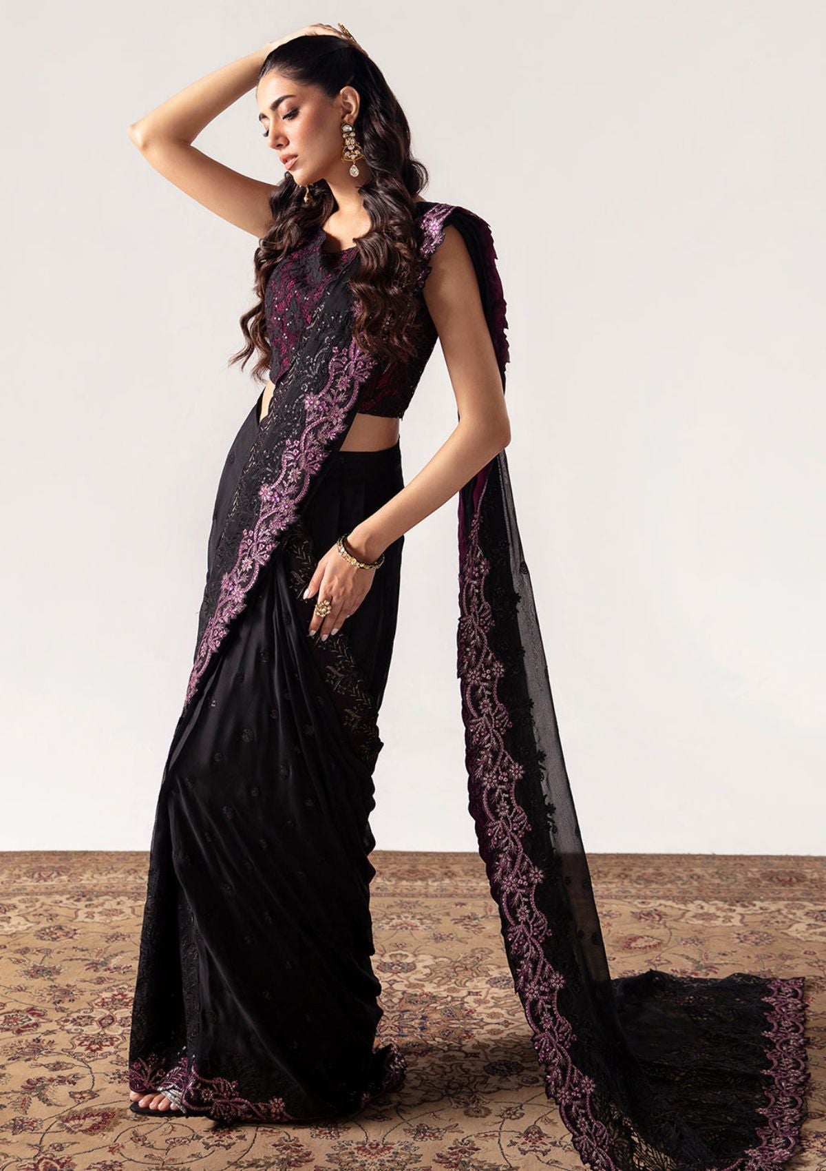 Black organza embroidered Cap + Sarhi border 1(4.7yrd)