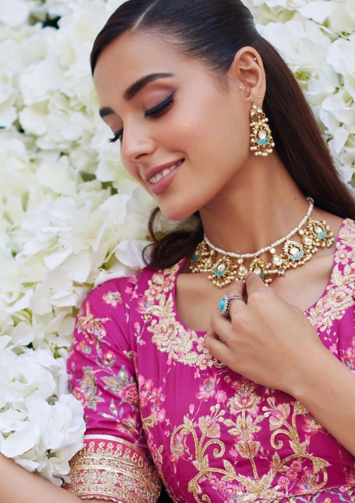 - PRINT & EMBROIDERED SLEEVES AND BODY ON RAW SILK