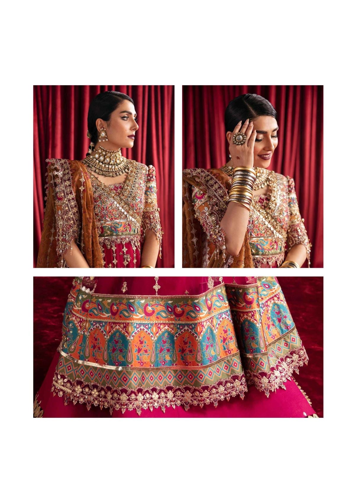 Gotta Embroidered Front Lace (Hand Made) Digital print ed Border Front (Hand Made) Gotta Embroidered Fabric kalli (Front & Back) Gotta Embroidered Fabirc kalli (Front & Back) Gotta Embroidered Lace (Back)