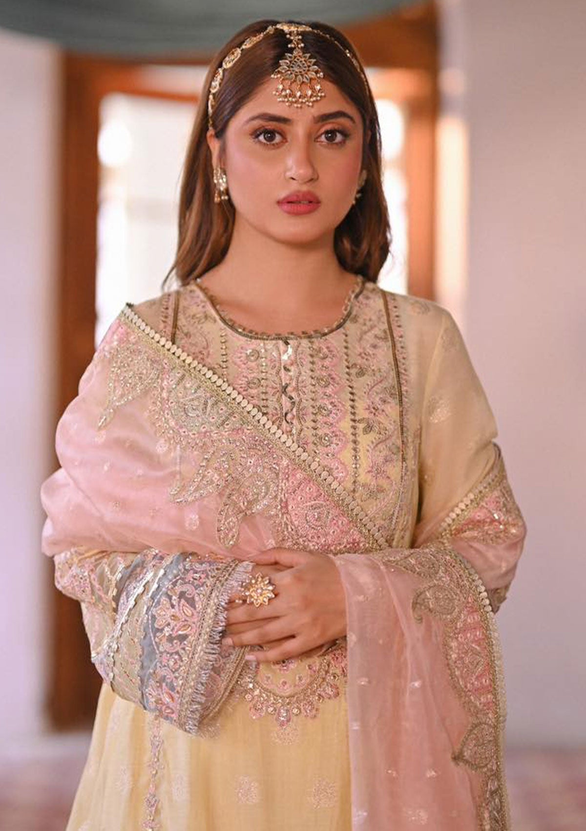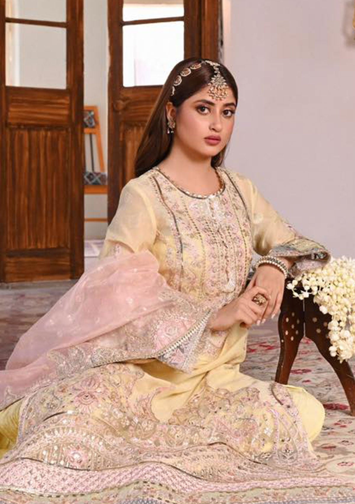 Gotta Embroidered Border on Oragnza (Sleeves-Hand Made)