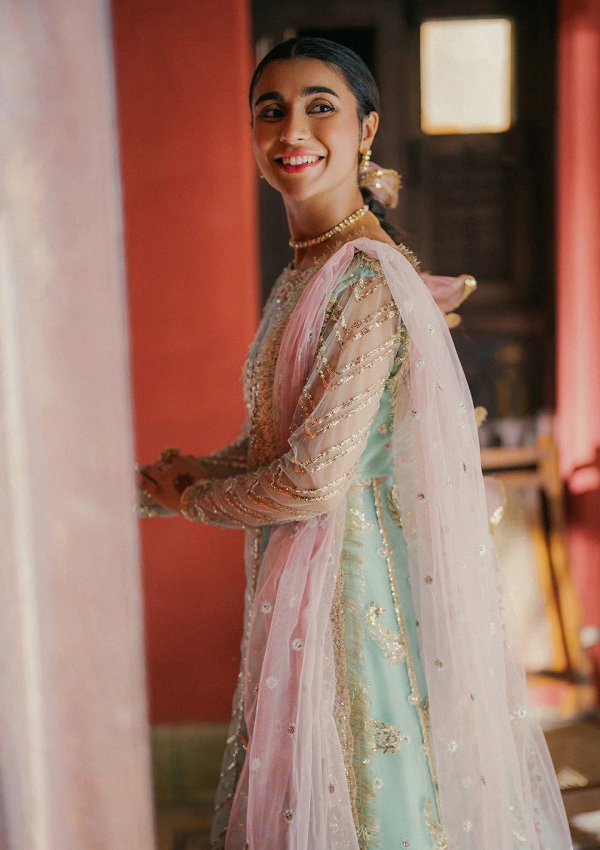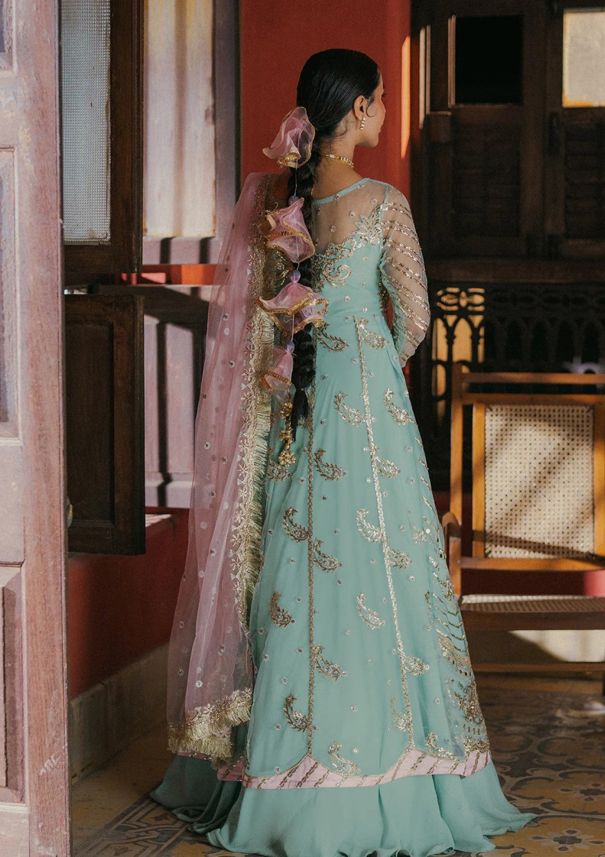 - -Embroidered and sequined dupatta lace