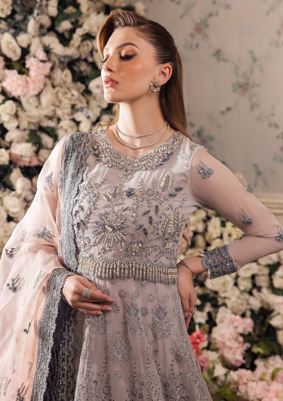 - Hand Embellished Front Bodice On Chiffon 1 Piece