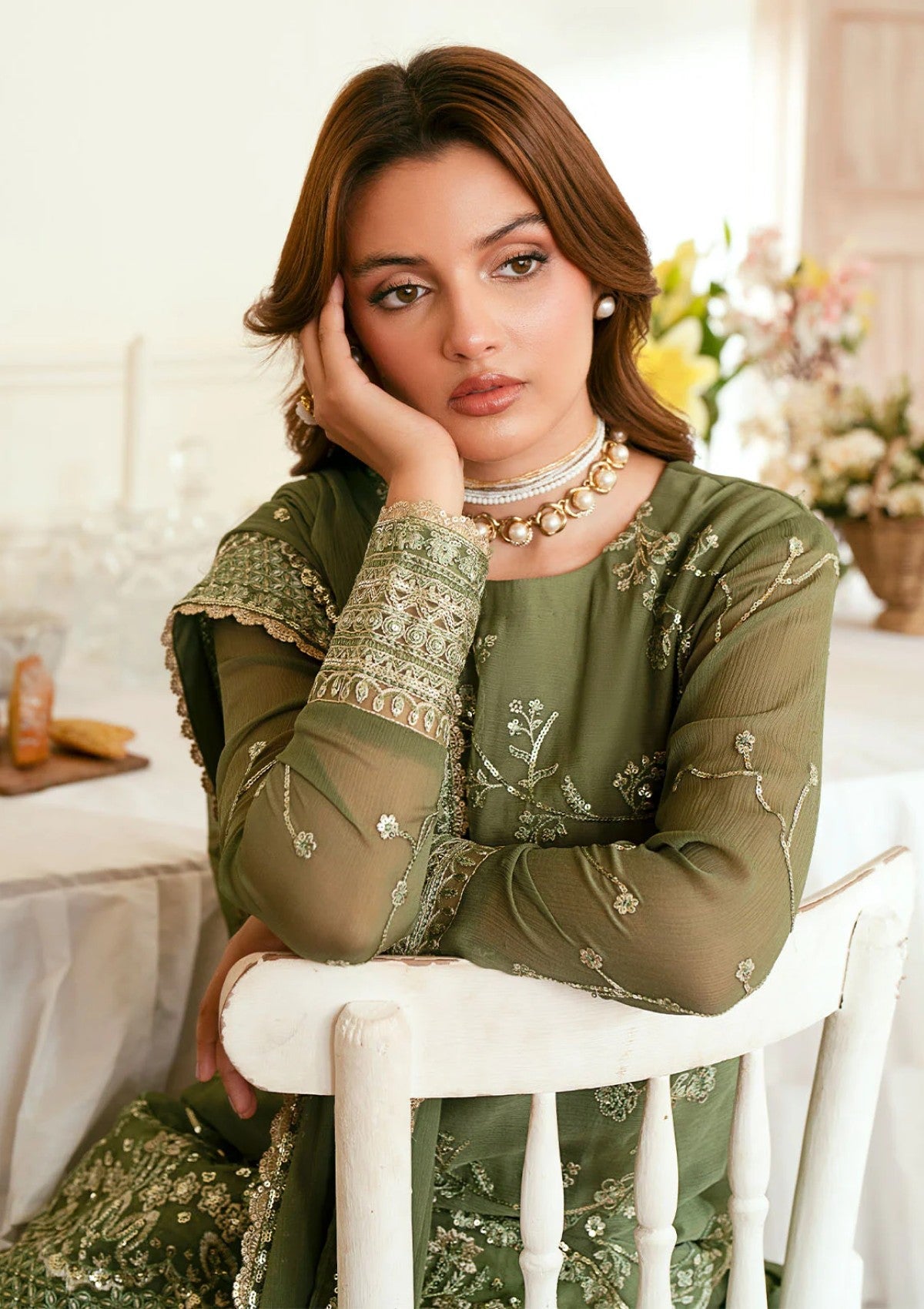 - Sequins Embroidered Chiffon Sleeves