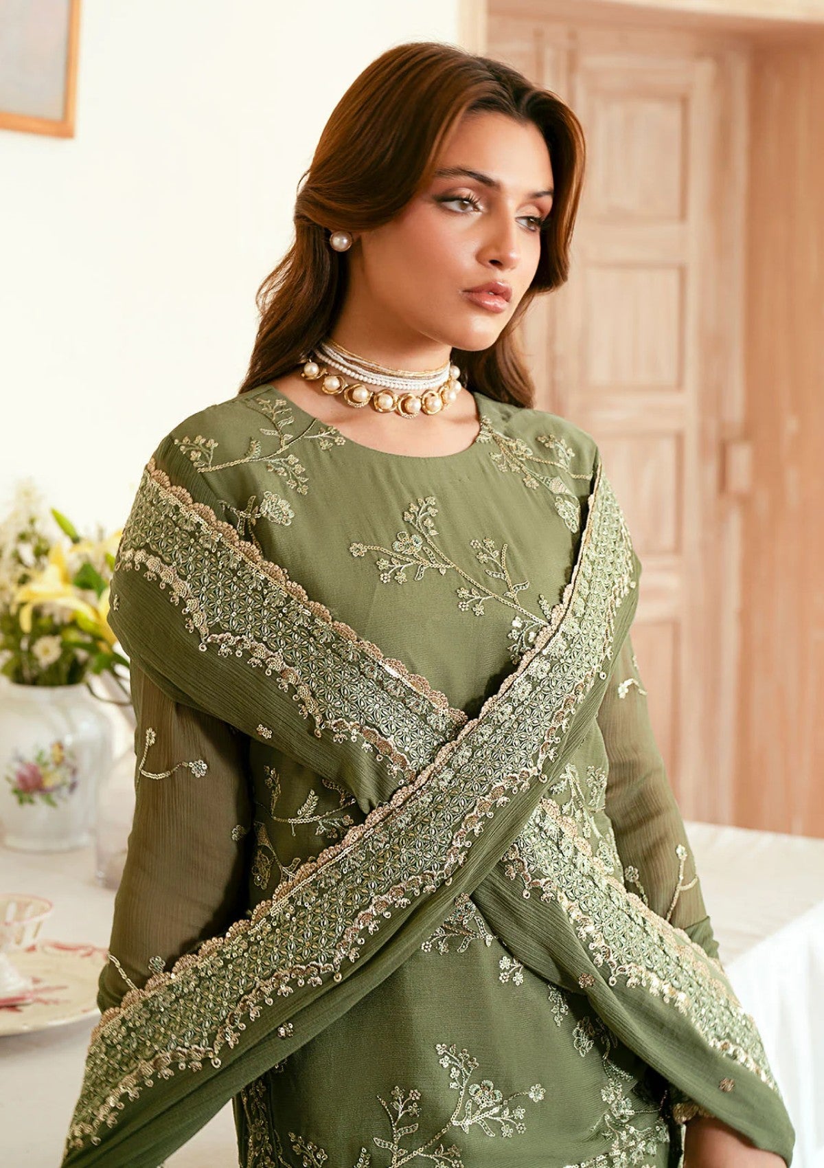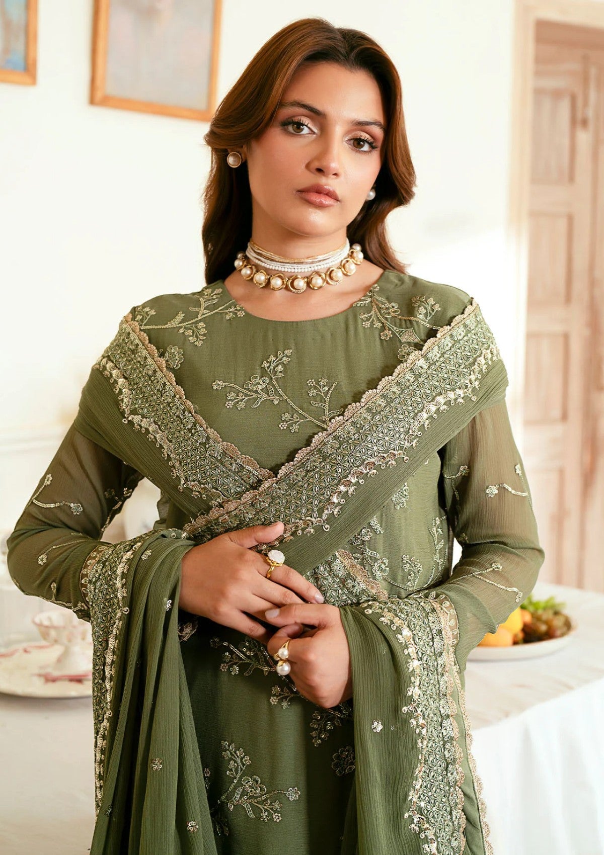 - Sequins Embroidered Chiffon Front