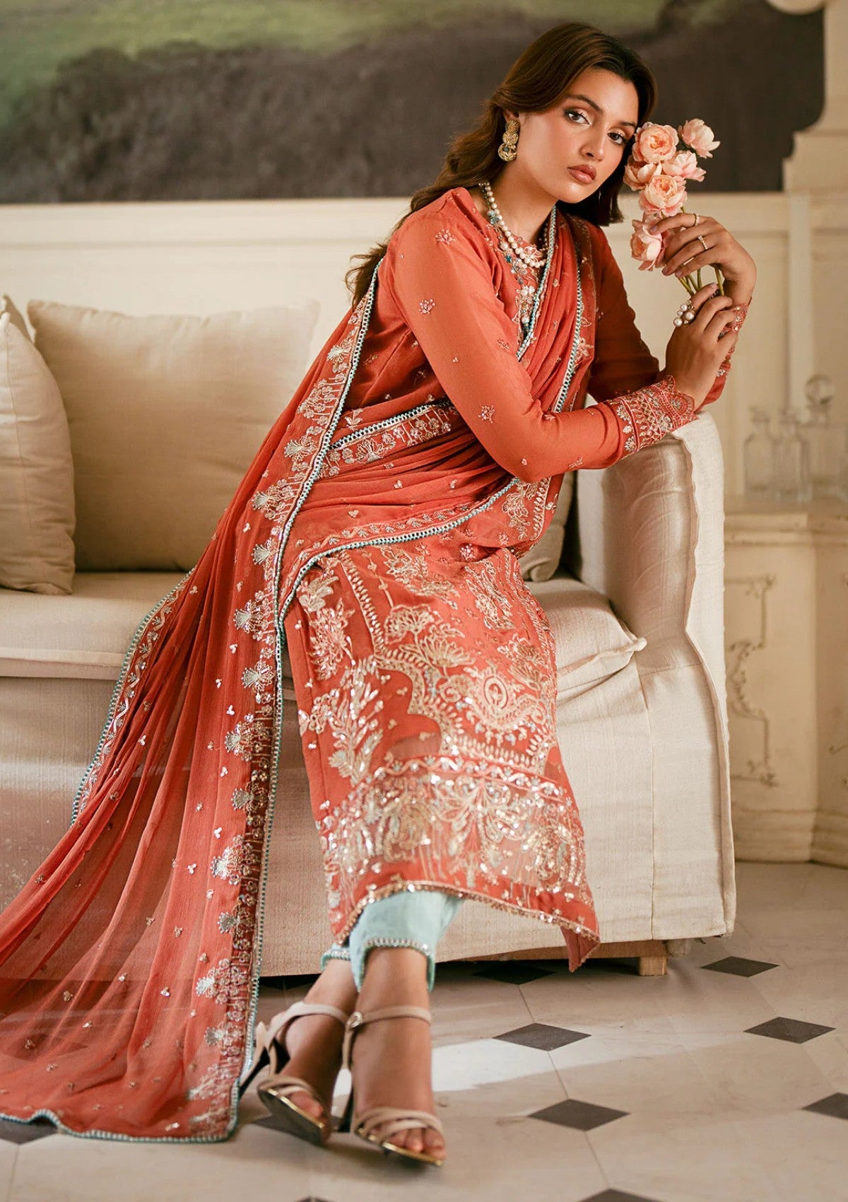 - Sequins Embroidered Chiffon Dupatta