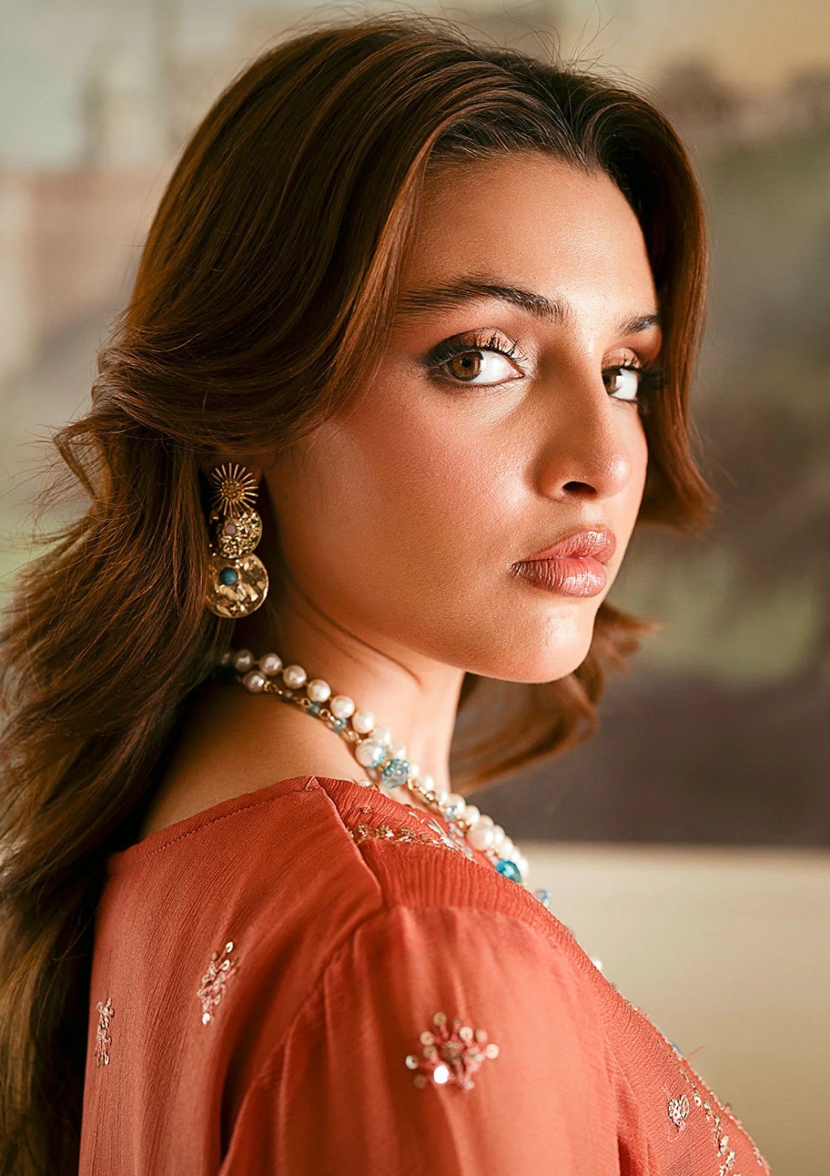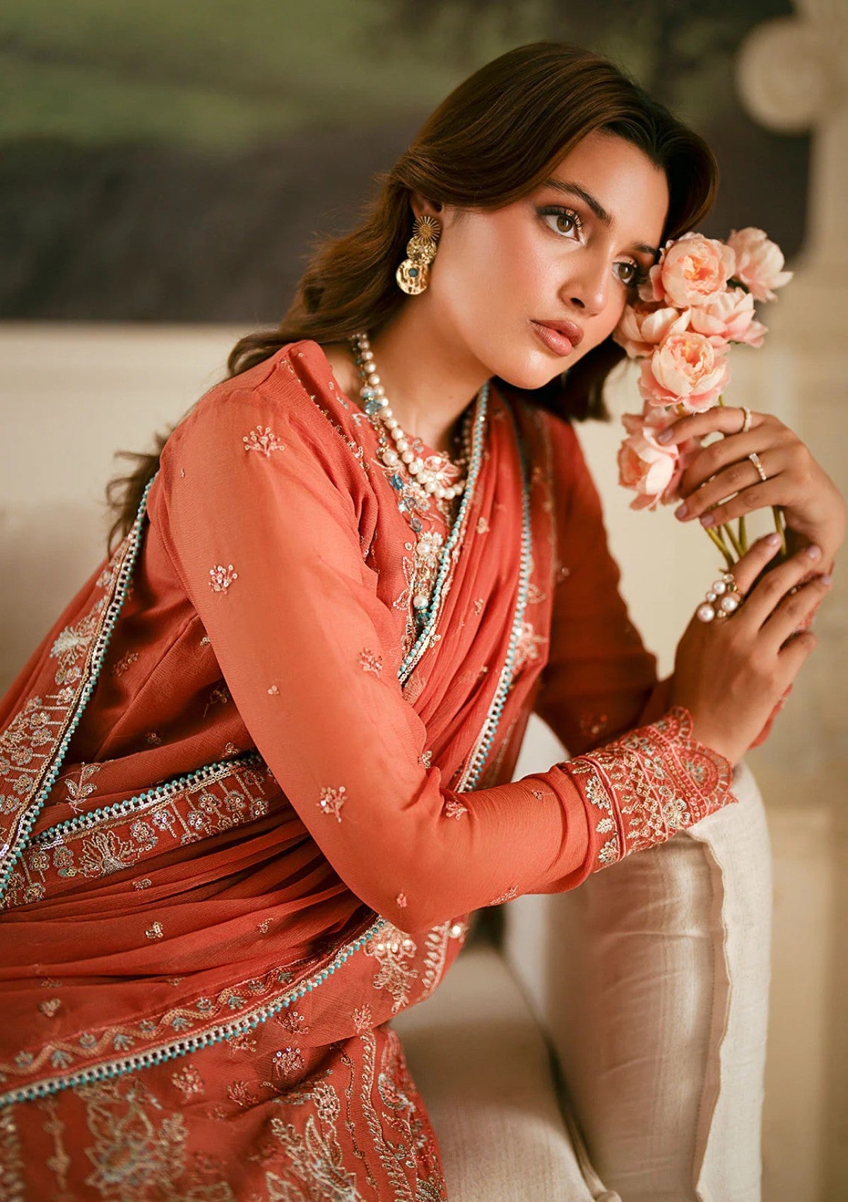 - Sequins Embroidered Chiffon Sleeves