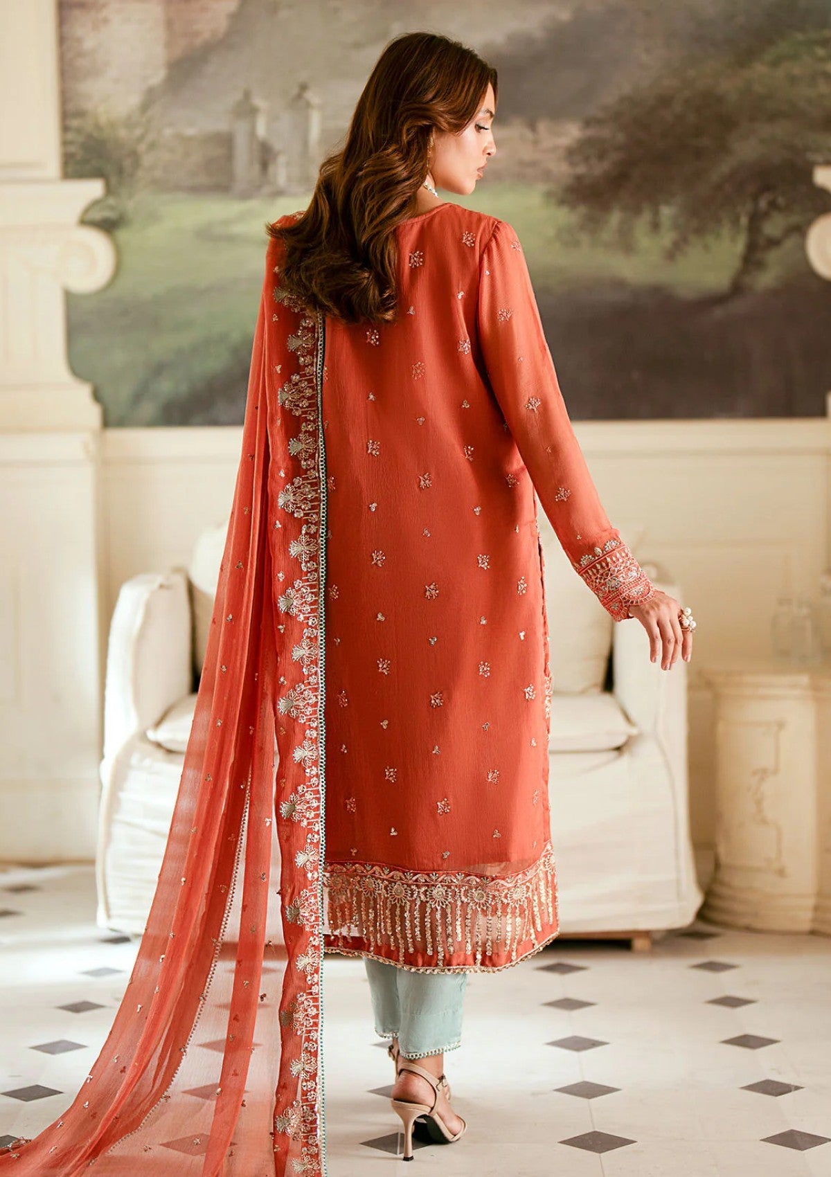 - Sequins Embroidered Chiffon Back