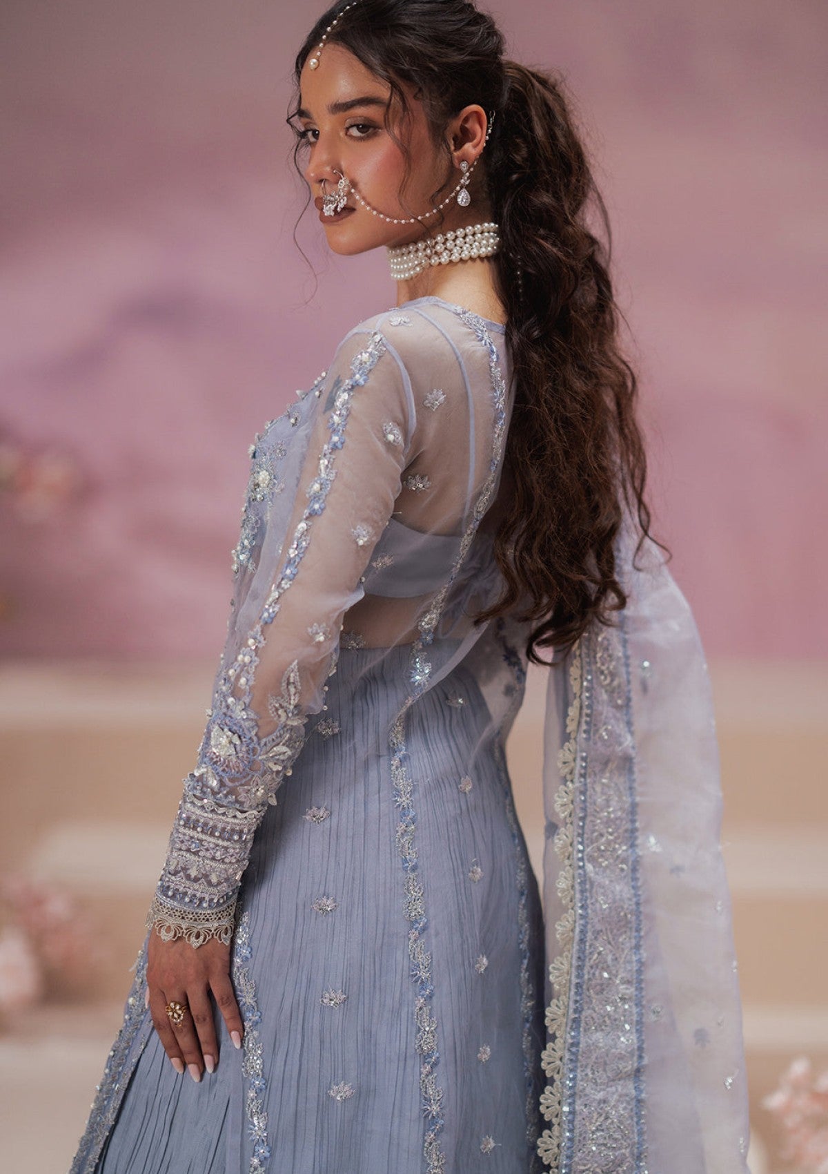 - Embroidered organza duppata (2.88 yards