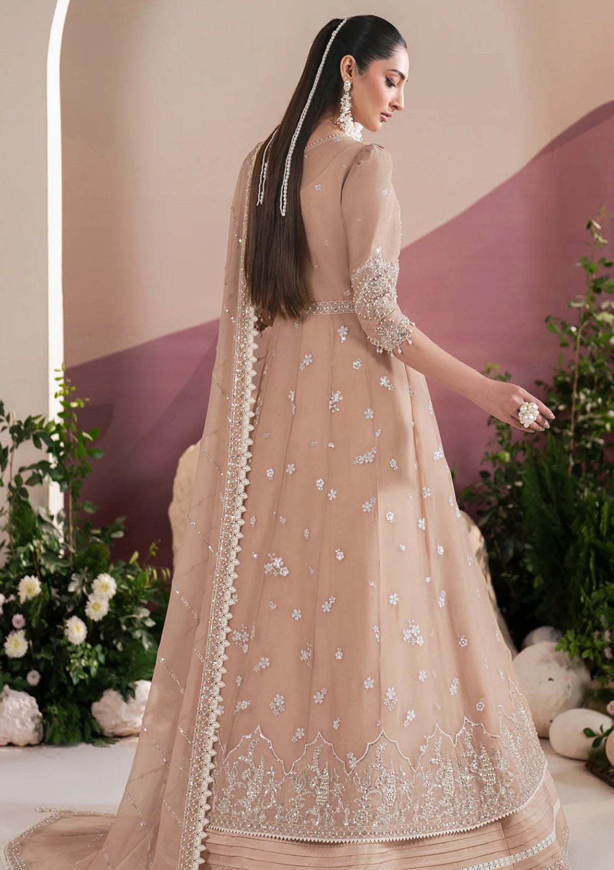 Introducing a new color, Powder Peach featuring a stunning pearl embroidery on a chiffon base, complemented by beautifully embroidered borders and sleeves. This combination exudes sophistication and elegance, paired with dyed raw silk trouser and a chiffon dupatta featuring with embroidered borders.