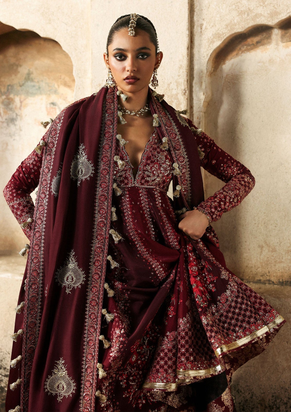 - Embroidered Dupatta (Korean Silk Dark Maroon) 2.6 Meters